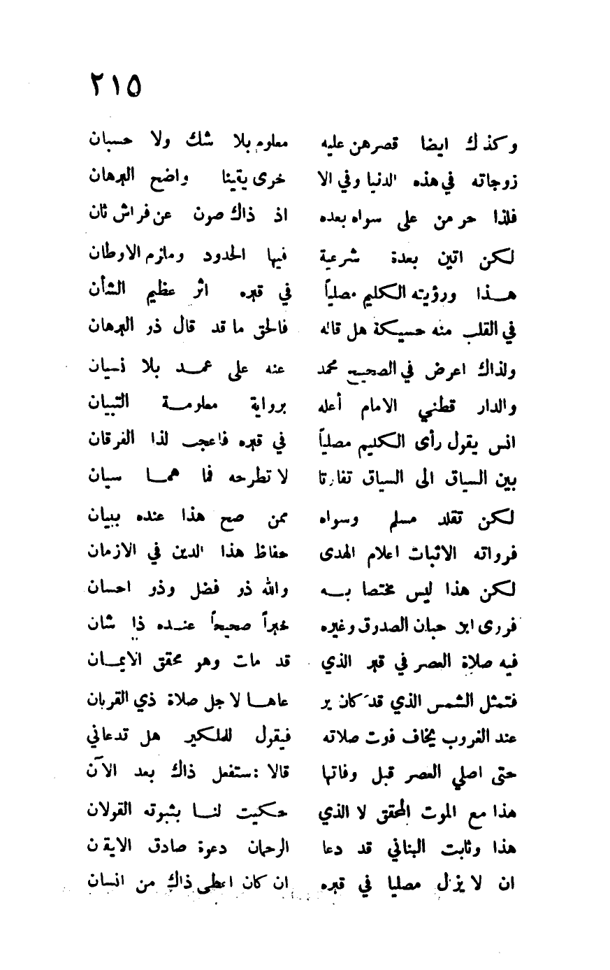 وكذاك أيضاً قصرهن عليه ... معلوم بلا شك ولا حسبان