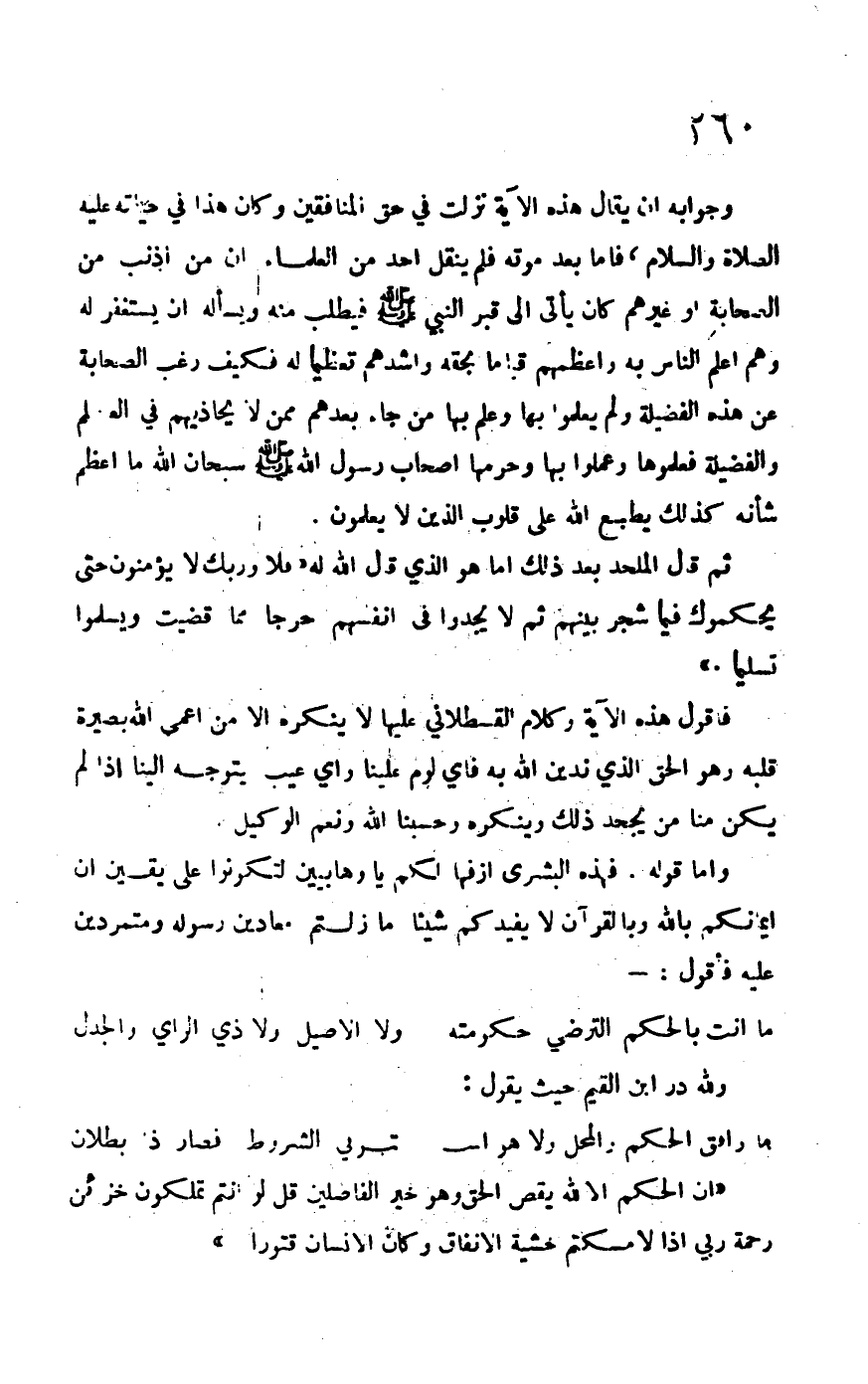 فأقول هذه الآية وكلام القسطلاني عليها لا ينكره إلا من أعمى الله بصيرة قلبه وهو الحق الذي ندين الله به فأي لوم علينا وأي عيب يتوجه إلينا إذا لم يكن منا من يجحد ذلك وينكره وحسبنا الله ونعم الوكيل.