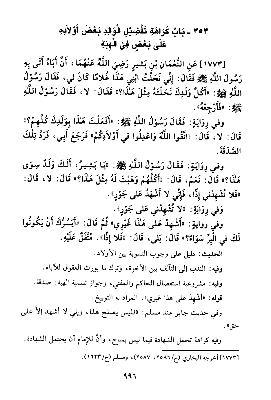 [1804] وعن يزيد بن شريكِ بن طارِقٍ، قَالَ: رَأيتُ عَلِيّاً - رضي الله عنه - عَلَى المِنْبَرِ يَخْطُبُ، فَسَمِعْتُهُ يقُولُ: لا واللهِ مَا عِنْدَنَا مِنْ كِتَابٍ نَقْرؤُهُ إِلا كِتَابَ اللهِ، وَمَا في هذِهِ الصَّحِيفَةِ، فَنَشَرَهَا فَإذَا فِيهَا أَسْنَانُ الإبِلِ، وَأشْيَاءُ مِنَ الجَرَاحَاتِ، وَفِيهَا: قَالَ رسُولُ اللهِ - صَلَّى اللهُ عَلَيْهِ وَسَلَّمَ -: «المَدينَةُ حَرَمٌ مَا بَيْنَ عَيْرٍ إِلَى ثَوْرٍ، فَمَنْ أحْدَثَ فِيهَا حَدَثاً، أَوْ آوَى مُحْدِثاً، فَعَلَيْهِ لَعْنَةُ اللهِ وَالمَلاَئِكَةِ وَالنَّاسِ أجْمَعِينَ، لا يَقْبَلُ اللهُ مِنْهُ يَومَ القِيَامَةِ صَرْفاً وَلا عَدْلاً. ذِمَّةُ المُسْلِمينَ وَاحِدَةٌ، يَسْعَى بِهَا أَدْنَاهُمْ، فَمَنْ أَخْفَرَ مُسْلِماً، فَعَلَيْهِ لَعْنَةُ اللهِ وَالمَلائِكَةِ وَالنَّاسِ أَجْمَعِينَ، لا يَقْبَلُ اللهُ مِنْهُ يَومَ القِيَامَةِ صَرْفاً وَلا عَدْلاً. وَمَن ادَّعَى إِلَى غَيرِ أَبيهِ، أَوْ انْتَمَى إِلَى غَيرِ مَوَاليهِ، فَعَلَيْهِ لَعْنَةُ اللهِ وَالمَلاَئِكَةِ وَالنَّاسِ أَجْمَعينَ؛ لا يَقْبَلُ اللهُ مِنْهُ يَومَ القِيَامَةِ صَرْفاً وَلا عَدْلاً» . متفق عَلَيْهِ.