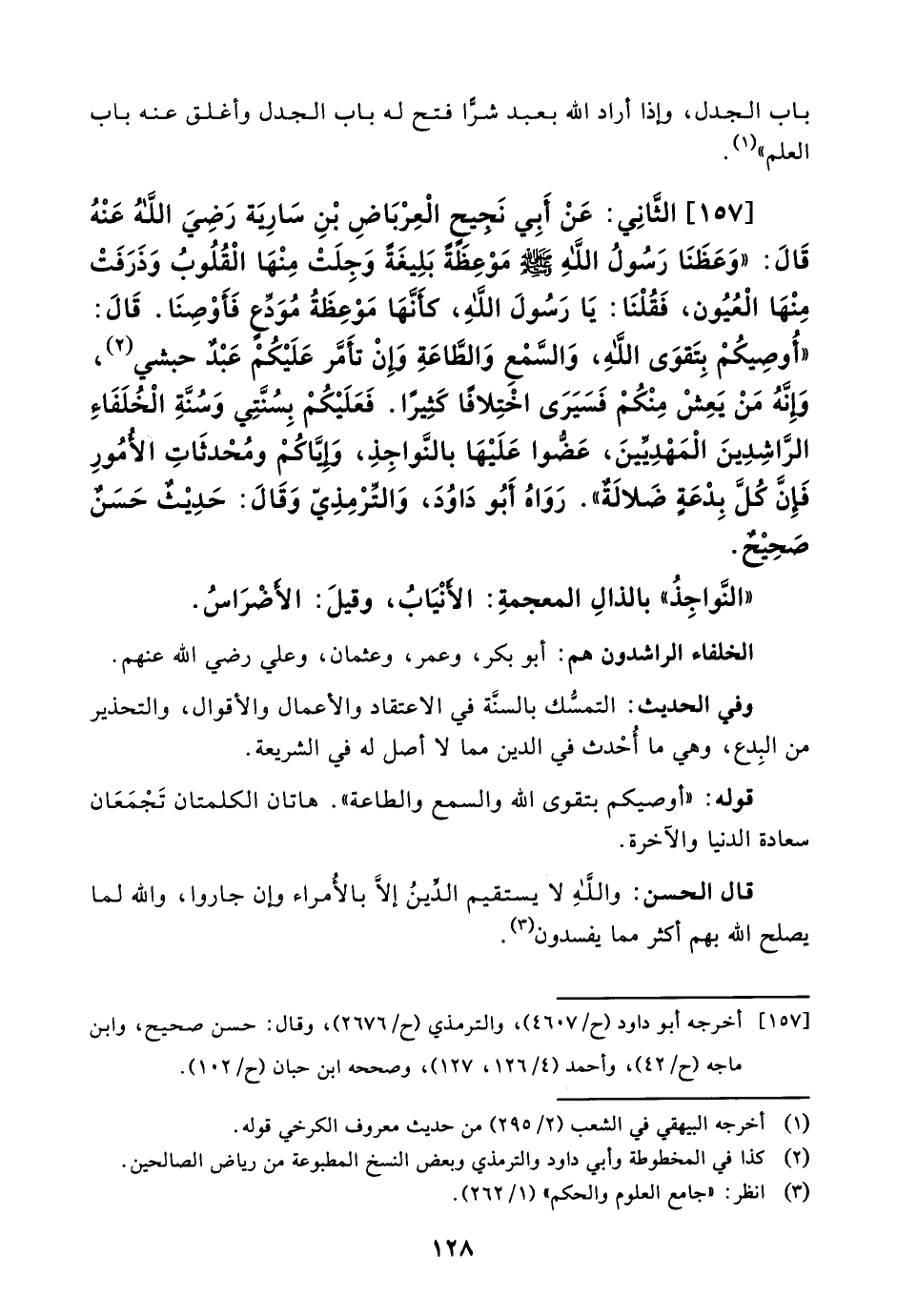 [190] السابع: عن أَبي سعيد الخُدري - رضي الله عنه - عن النَّبيّ - صلى الله عليه وسلم - قَالَ: «إيَّاكُمْ وَالجُلُوسَ في الطُّرُقَاتِ!» فقالوا: يَا رَسُول الله، مَا لنا مِنْ مجالِسِنا بُدٌّ، نتحدث فِيهَا. فَقَالَ رسولُ الله - صلى الله عليه وسلم -: «فَإذَا أبَيْتُمْ إلا المَجْلِسَ، فَأَعْطُوا الطَّريقَ حَقَّهُ» . قالوا: وما حَقُّ الطَّريقِ يَا رسولَ الله؟ قَالَ: «غَضُّ البَصَرِ، وَكَفُّ الأَذَى، وَرَدُّ السَّلامِ، وَالأمْرُ بِالمَعْرُوفِ، والنَّهيُ عن المُنْكَرِ» . مُتَّفَقٌ عَلَيهِ.