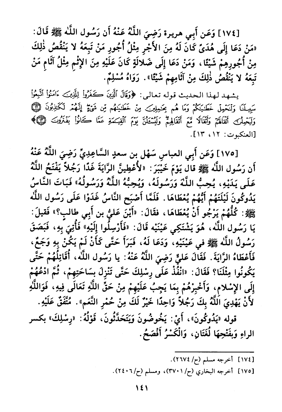 بَعْدِي كُفّاراً يَضْرِبُ بَعْضُكُمْ رِقَابَ بَعْضٍ» . رواه البخاري، وروى مسلم بعضه.