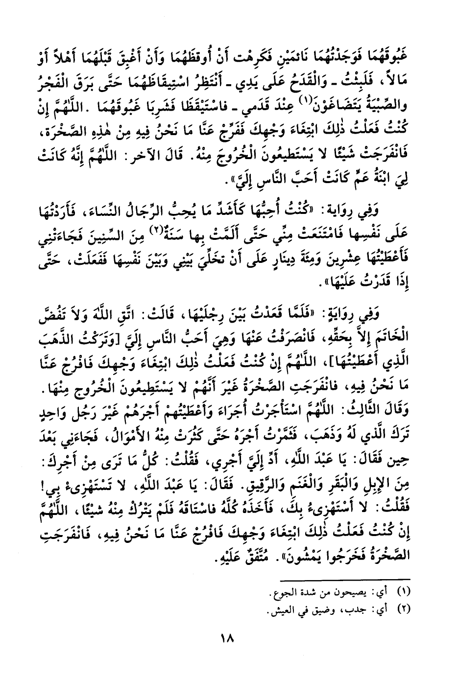 خُذْ سَهْماً مِنْ كِنَانَتي، ثُمَّ ضَعِ السَّهْمَ في كَبدِ القَوْسِ ثُمَّ قُلْ: بسْم الله ربِّ الغُلاَمِ، ثُمَّ ارْمِني، فَإنَّكَ إِذَا فَعَلْتَ ذلِكَ قَتَلتَني، فَجَمَعَ النَّاسَ في صَعيد واحدٍ، وَصَلَبَهُ عَلَى جِذْعٍ، ثُمَّ أَخَذَ سَهْماً مِنْ كِنَانَتِهِ، ثُمَّ وَضَعَ السَّهْمَ في كَبِدِ القَوْسِ، ثُمَّ قَالَ: بِسمِ اللهِ ربِّ الغُلامِ، ثُمَّ رَمَاهُ فَوقَعَ في صُدْغِهِ، فَوَضَعَ يَدَهُ في صُدْغِهِ فَمَاتَ، فَقَالَ النَّاسُ: آمَنَّا بِرَبِّ الغُلامِ، فَأُتِيَ المَلِكُ فقيلَ لَهُ: أَرَأَيْتَ مَا كُنْتَ تَحْذَرُ قَدْ والله نَزَلَ بكَ حَذَرُكَ. قَدْ آمَنَ النَّاسُ. فَأَمَرَ بِالأُخْدُودِ بأفْواهِ السِّكَكِ فَخُدَّتْ وأُضْرِمَ فيهَا النِّيرانُ وَقَالَ: مَنْ لَمْ يَرْجعْ عَنْ دِينهِ فَأقْحموهُ فيهَا، أَوْ قيلَ لَهُ: اقتَحِمْ فَفَعَلُوا حَتَّى جَاءت امْرَأةٌ وَمَعَهَا صَبيٌّ لَهَا، فَتَقَاعَسَتْ أنْ تَقَعَ فيهَا، فَقَالَ لَهَا الغُلامُ: يَا أُمهْ اصْبِري فَإِنَّكِ عَلَى الحَقِّ!» . رواه مسلم.