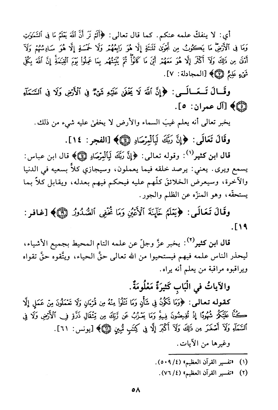 وَقالَ تَعَالَى: {إِنَّ في خَلْقِ السَّمَاوَاتِ وَالأَرْضِ وَاخْتِلافِ اللَّيْلِ وَالنَّهَارِ لآياتٍ لأُولِي الأَلْبَابِ * الَّذِينَ يَذْكُرُونَ اللهَ قِيَاماً وَقُعُوداً وَعَلَى جُنُوبِهِمْ وَيَتَفَكَّرُونَ فِي خَلْقِ السَّمَاوَاتِ وَالأَرْضِ رَبَّنَا مَا خَلَقْتَ هَذَا بَاطِلاً سُبْحَانَكَ} الآيات [آل عمران (190، 191) ] .