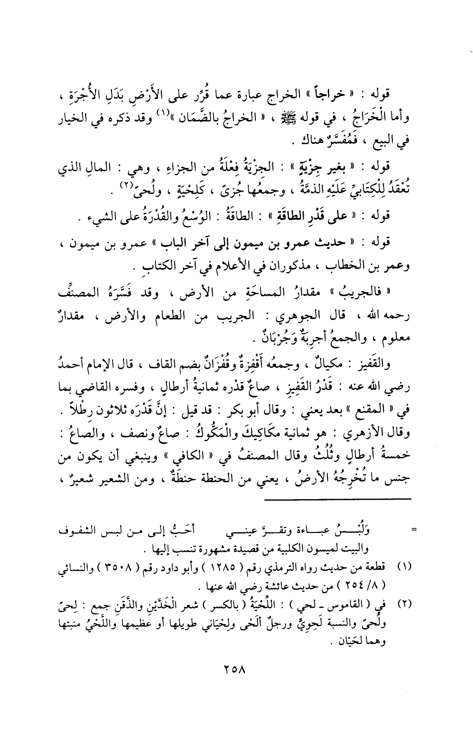 قوله: "خراجاً" الخراج عبارة عما قرِّر على الأرضِ بَدَلِ الأُجْرَةِ، وأما الخَرَاجُ، في قوله صلى الله عليه وسلم، "الخراجُ بالضَّمَان" 1 وقد ذكره في الخيار في البيع، فَمُفسَّرٌ هناك.
