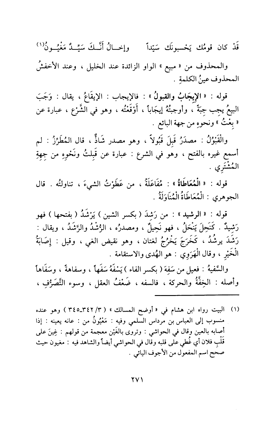 1 البيت رواه ابن هشام في "أوضح المسالك" "3/ 342-345" وهو عنده منسوب إلى العباس بن مرداس السلمي وفيه: معيون من: عانه يعينه: إذا أصابه بالعين وقال في الحواشي: وتروى بالغين معجمة من قولهم: غين على قلب فلان أي غطي على قلبه وقال في الحواشي أيضًا والشاهد فيه: مغيون حيث صحح اسم المفعول من الأجوف اليائي.