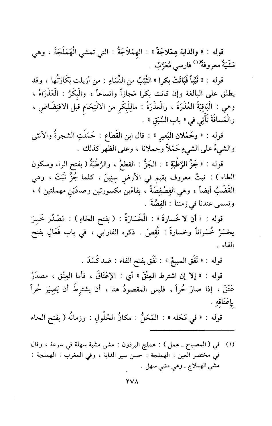 1 في "المصباح - همل": هملج البرذون: مشى مشية سهلة في سرعة، وقال في مختصر العين: الهملجة: حسن سير الدابة، وفي المغرب: الهملجة: مشي الهملاج - وهي مشي سهل.