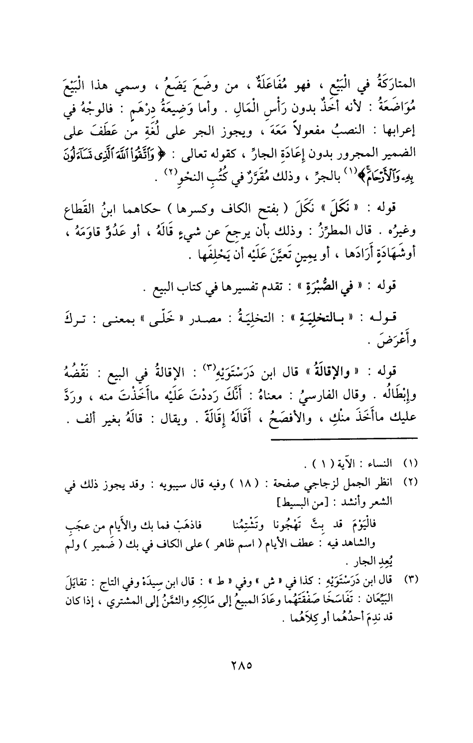 3 قال ابن درستويه: كذا في "ش" وفي "ط": قال ابن سيده وفي التاج: تقايَلَ البَيِّعَان: تفاسخا صفقتهما وعاد المبيع إلى مالكه والثمن إلى المشتري، إذا كان قد ندم أحدهما أو كلاهما.