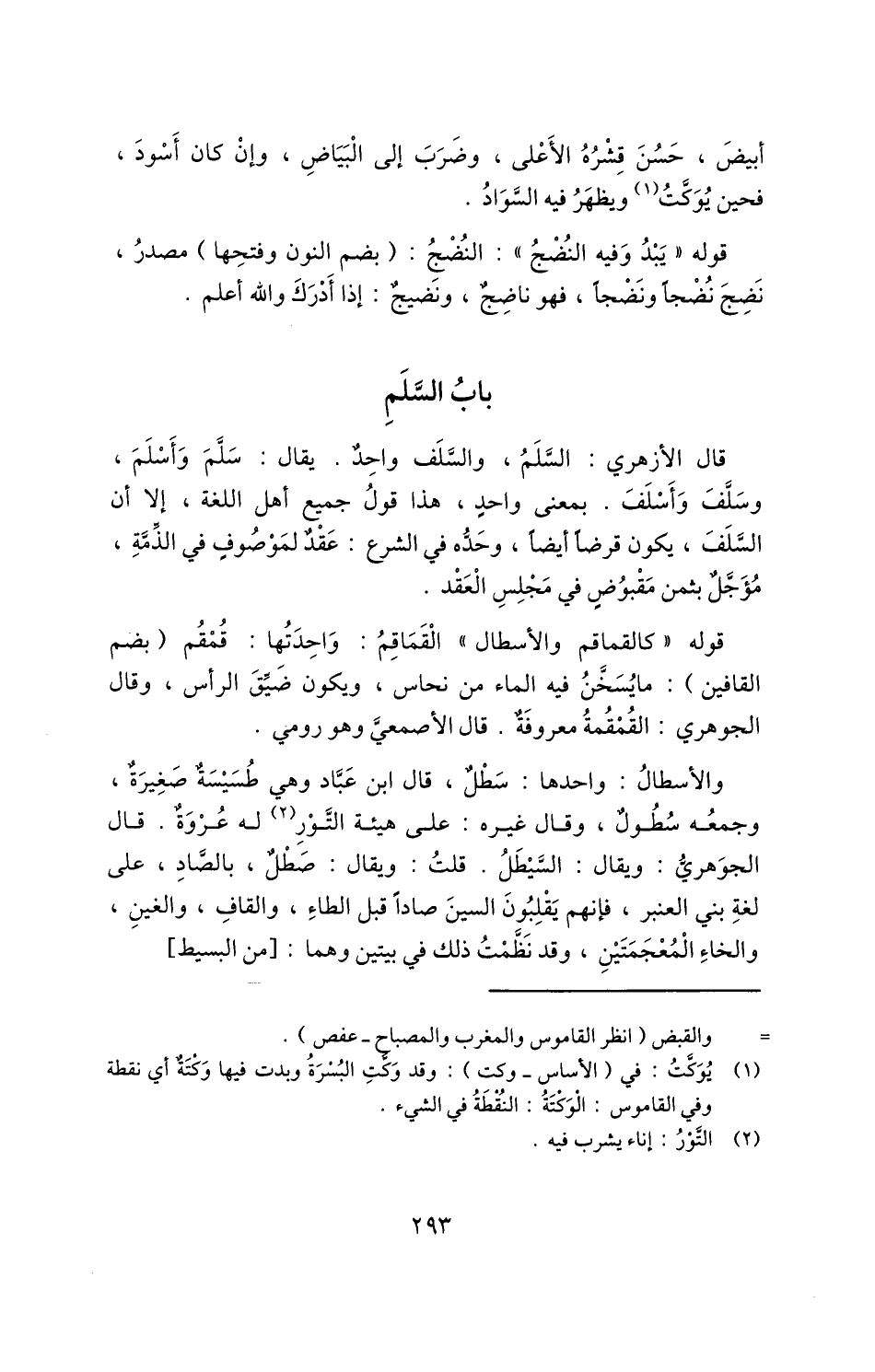 قال الأزهري: السَّلَمُ، والسلف واحد. يقال: سَلَّمَ وأَسْلَمَ، وسَلَّفَ وَأَسْلَفَ. بمعنى واحد، هذا قول جميع أهل اللغة، إلا أن السلف، يكون قرضًا أيضًا وحده في الشرع: عقد لموصوف في الذمة، مؤجل بثمن مقبوض في مجلس العقد.