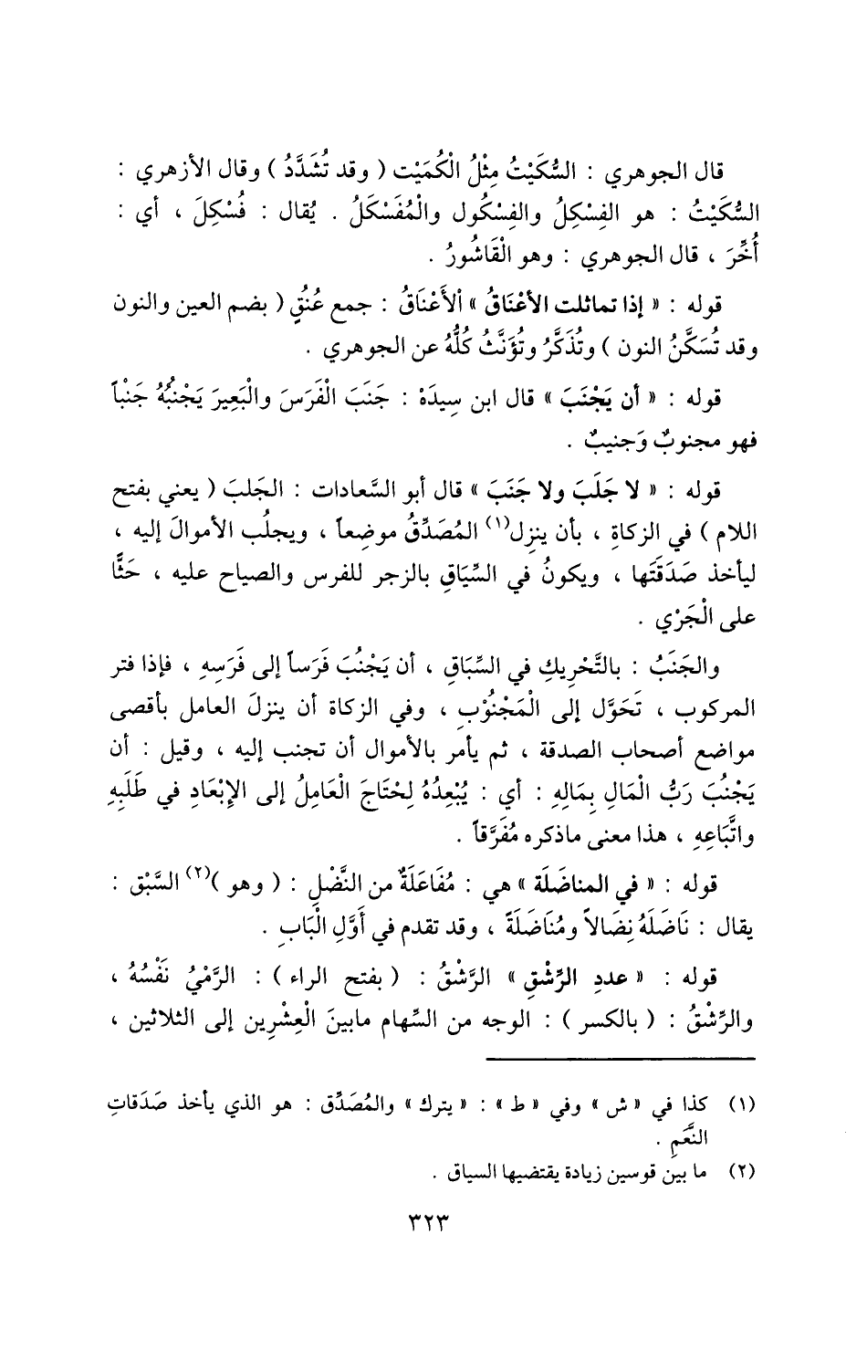 والجَنَبُ: بالتحريك في السابق، أن يجنب فرسًا إلى فرسه، فإذا فتر المركوب، تحول إلى المجنوب، وفي الزكاة أن ينزل العامل بأقصى مواضع أصحاب الصدقة، ثم يأمر بالأموال أن تجنب إليه، وقيل: أن يجنب رب المال بماله: أي: يبعده لحتاج العامل إلى الإبعاد في طلبه واتباعه، هذا معنى ما ذكره مفرقًا.