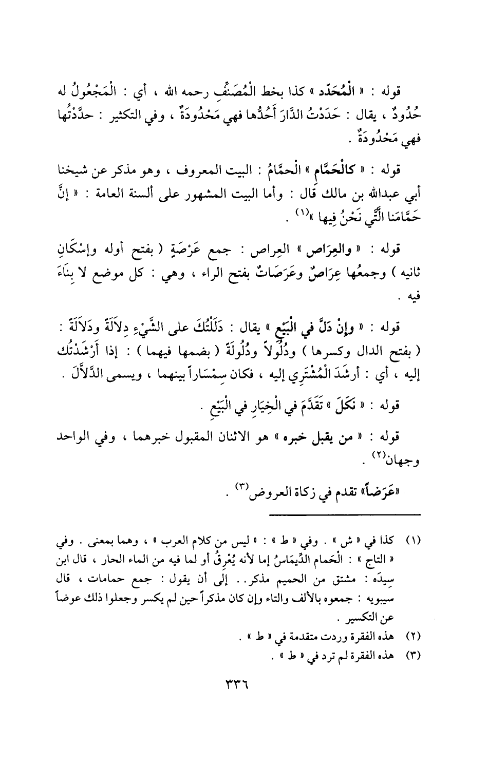 1 كذا في "ش"، وفي "ط": "ليس من كلام العرب"، وهما بمعنى، وفي "التاج": الحمام الديماس إما؛ لأنه يعرق أو لما فيه من الماء الحار، قال ابن سيده: مشتق من الحميم مذكر.. إلى أن يقول: جمع حمامات، قال سيبويه: جمعوه بالألف والتاء وإن كان مذكرًا حين لم يكسر وجعلوا ذلك عوضاً عن التكسير.