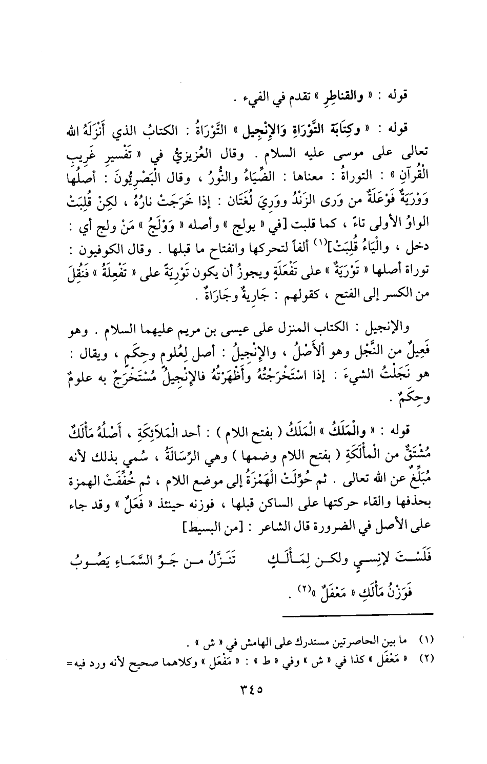 2 "مَعْفَل" كذا في "ش" وفي "ط": "مَفْعَل" وكلاهما صحيح؛ لأنه ورد فيه مَأْلَكٌ وملأك بالتقديم والتأخير بين الهمزة واللام. والبيت أنشده في "التاج في المواد: أَلَكَ وَلَأَكَ وَمَلَكَ" وهو منسوب فيه لعلقمة بن عبدة يمدح الحارث بن جبلة بن أبي شمر وهو أيضًا في اللسان والتكملة والجمهرة.