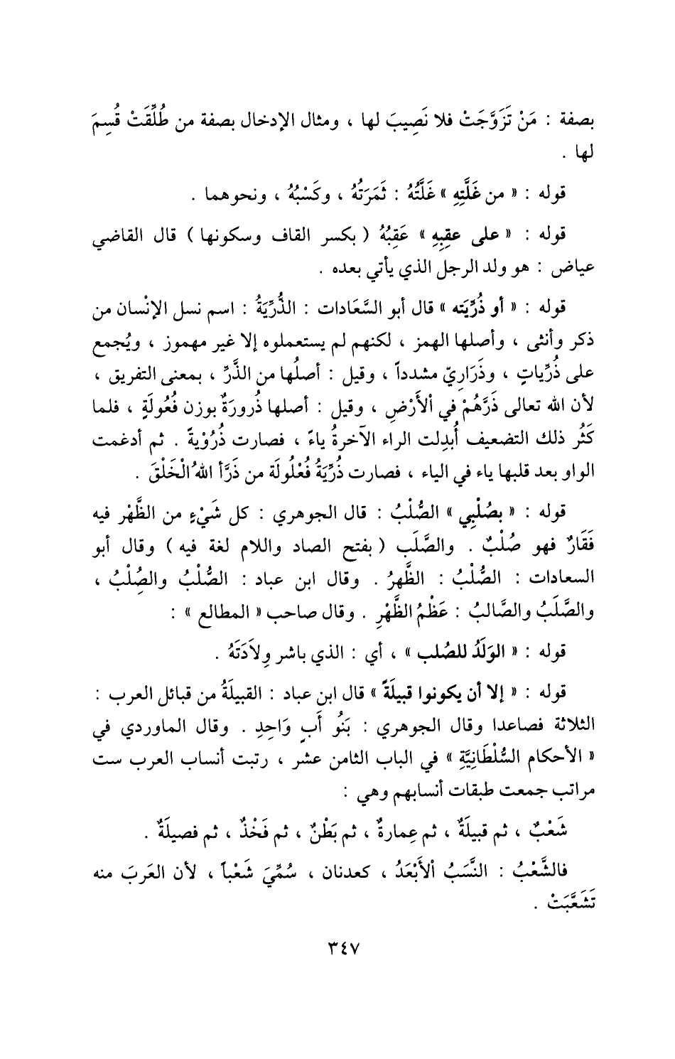 فالشعب: النسب الأبعد، كعدنان، سمي شعبًا؛ لأن العرب منه تَشَعَّبَتْ.