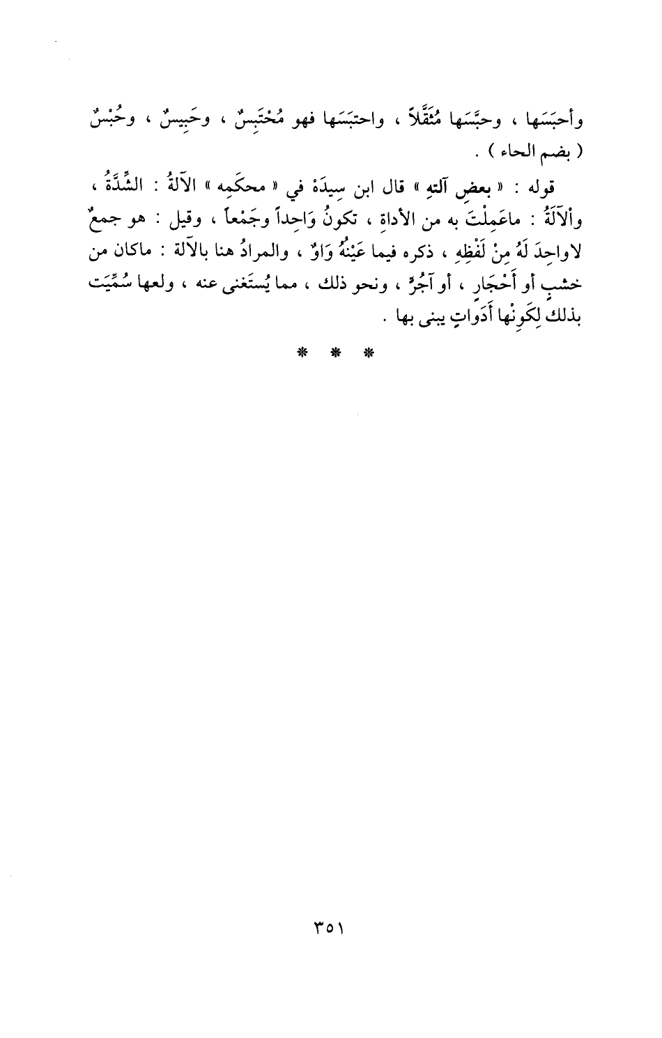 وأحبسها، وحبسها مثقلا، واحتبسها فهو محتبس، وحبيس، وحبس "بضم الحاء".