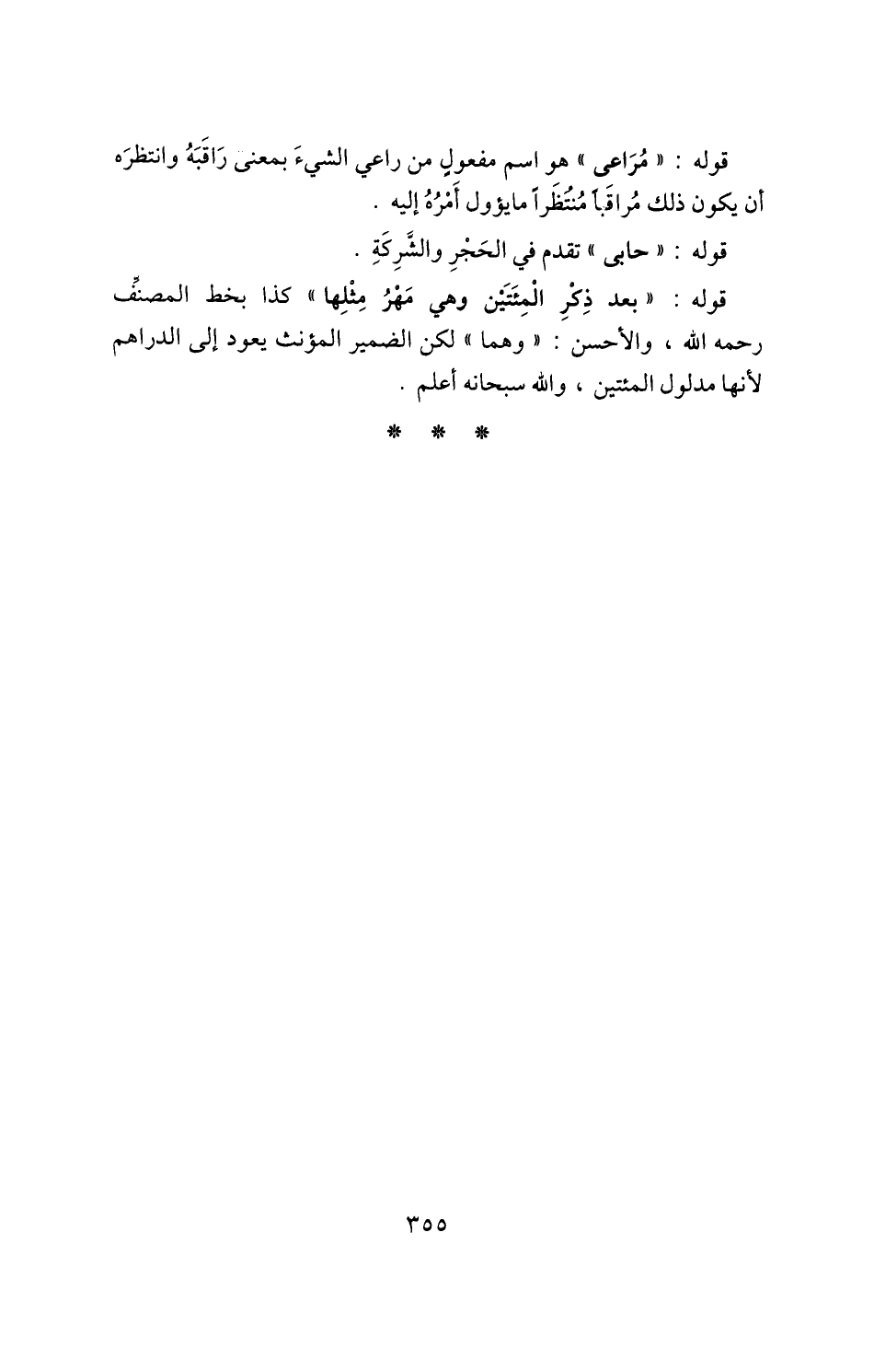 قوله: "بعد ذِكْرِ الْمِئَتَيْنِ وهي مَهْرُ مِثْلِها" كذا بخط المصنف رحمه الله، والأحسن: "وهما" لكن الضمير المؤنث يعود إلى الدراهم؛ لأنها مدلول المئتين، والله سبحانه أعلم.