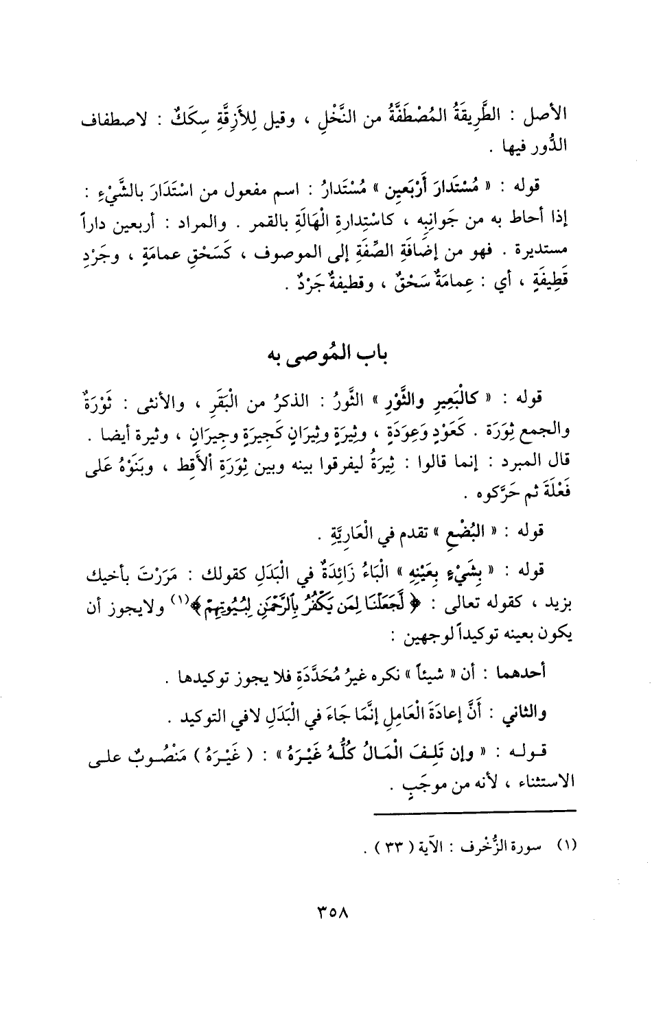 قوله: "بِشَيءٍ بِعَيْنِهِ" الباء زائدة في البدل كقولك: مررت بأخيك بزيد، كقوله تعالى: {لَجَعَلْنَا لِمَنْ يَكْفُرُ بِالرَّحْمَنِ لِبُيُوتِهِمْ} 1 ولا يجوز أن يكون بعينه توكيدًا لوجهين: