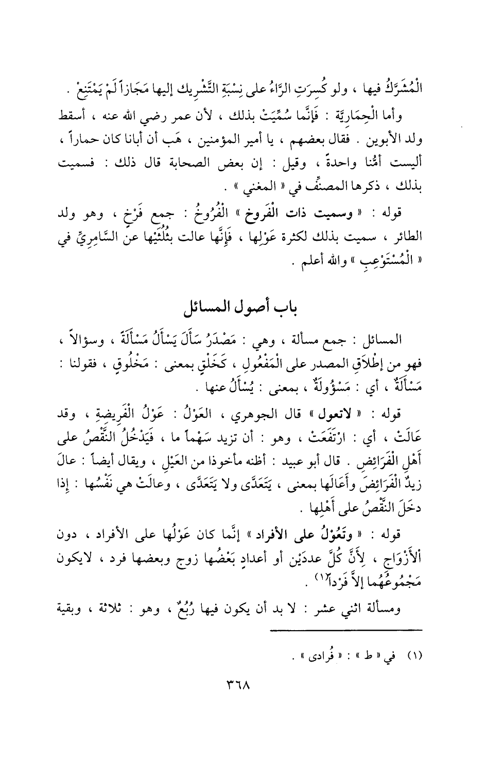 قوله: "وسميت ذات الْفَروخ" الفروخ: جمع فرخ، وهو ولد الطائر، سميت بذلك لكثرة عولها، فإنها عالت بثلثيها عن السامري في "المستوعب" والله أعلم.