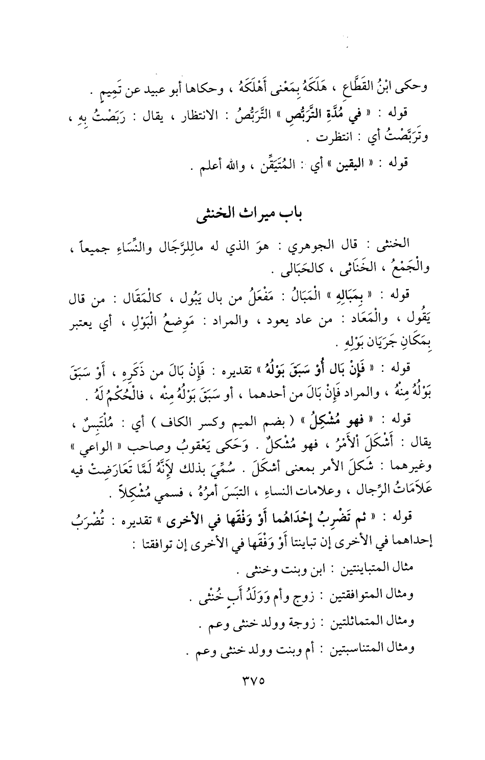 ومثال المتناسبتين: أم وبنت وولد خنثى وعم.