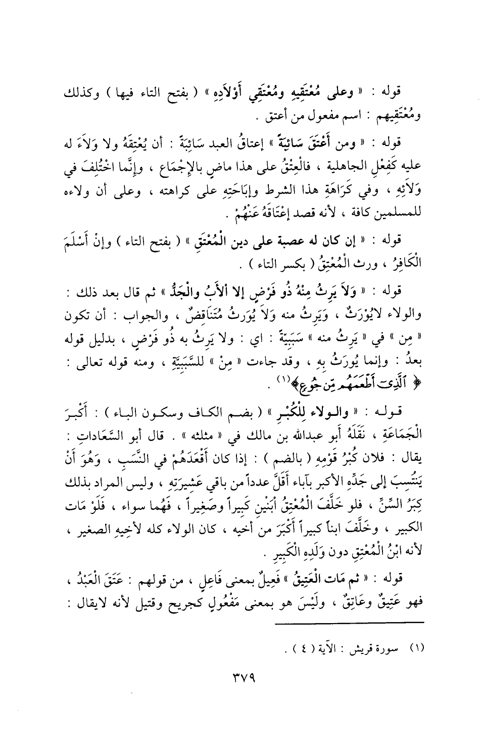 قوله: "إن كان له عصبة على دين الْمُعْتَقِ" "فتح التاء" وإن أسلم الكافر، ورث المعتق "بكسر التاء".