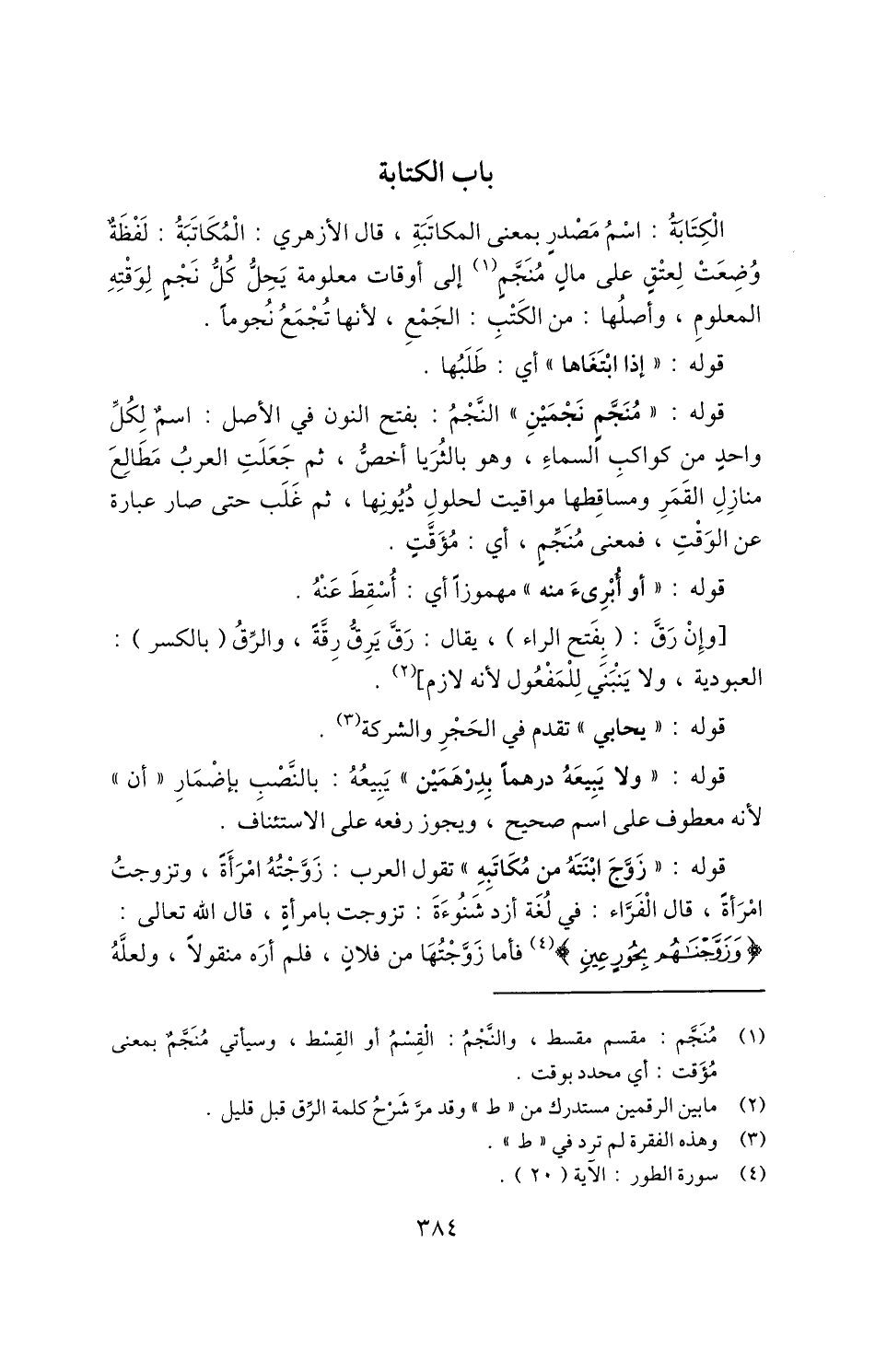 1 منجم: مقسم مقسط، والنجم: القسم أو القسط، وسيأتي منجم بمعنى مؤقت: أي محدد بوقت.