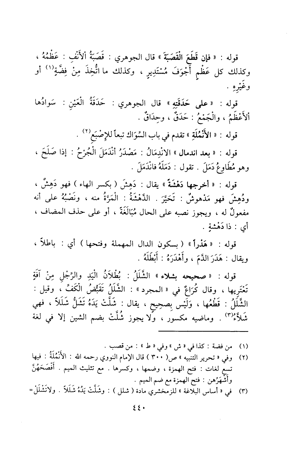 2 وفي "تحرير التنبيه" ص "300" قال الإمام النووي رحمه الله: الأنملة: فيها تسع لغات: فتح الهمزة، وضمها، وكسرها. مع تثليث الميم. أفصحهن وأشهرهن: فتح الهمزة مع ضم الميم.