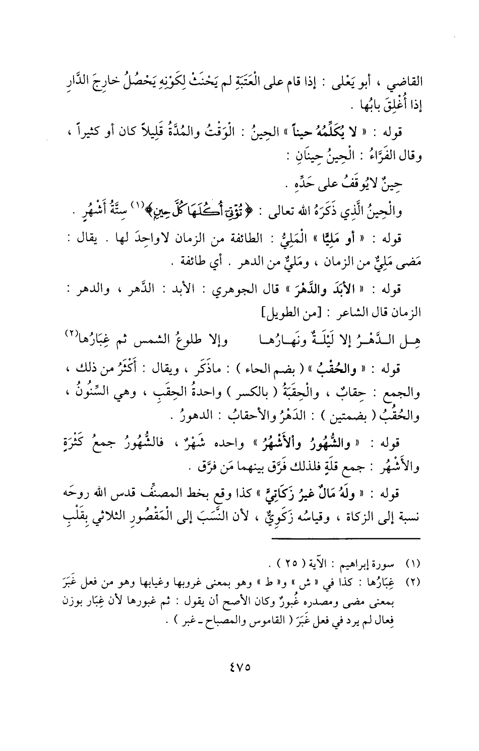 قوله: "والشُّهُورُ والْأَشْهُرُ" واحده شهر، فالشهور جمع كثرة والأشهر: جمع قلة فلذلك فرق بينهما من فرق.