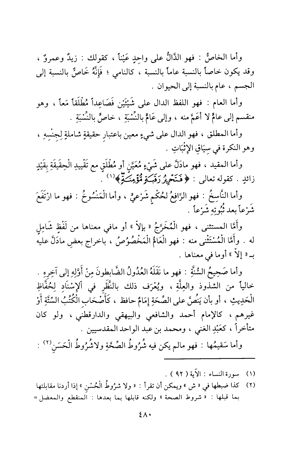 وأما المقيد، فهو ما دل على شيء معين أو مطلق مع تقييد الحقيقة بقيد زائد. كقوله تعالى: {فَتَحْرِيرُ رَقَبَةٍ مُؤْمِنَةٍ} 1.