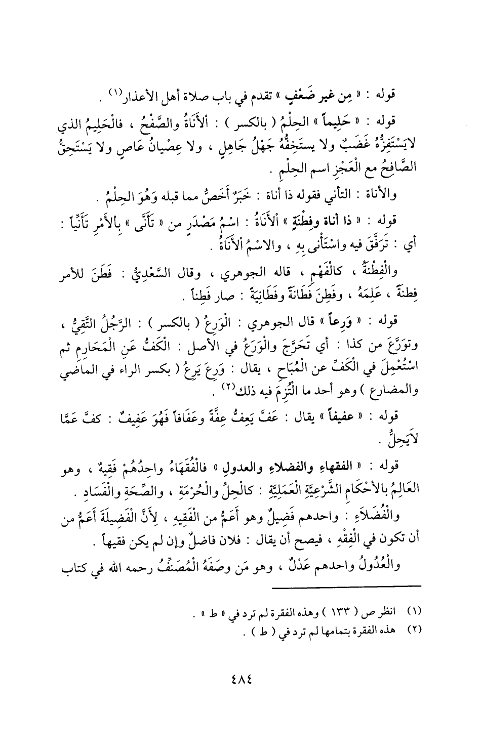 قوله: "الفقهاءِ والفضلاءِ والعدولِ" فالفقهاء واحدهم فقيه، وهو العالم بالأحكام الشرعية العملية: كالحل والحرمة، والصحة والفساد.