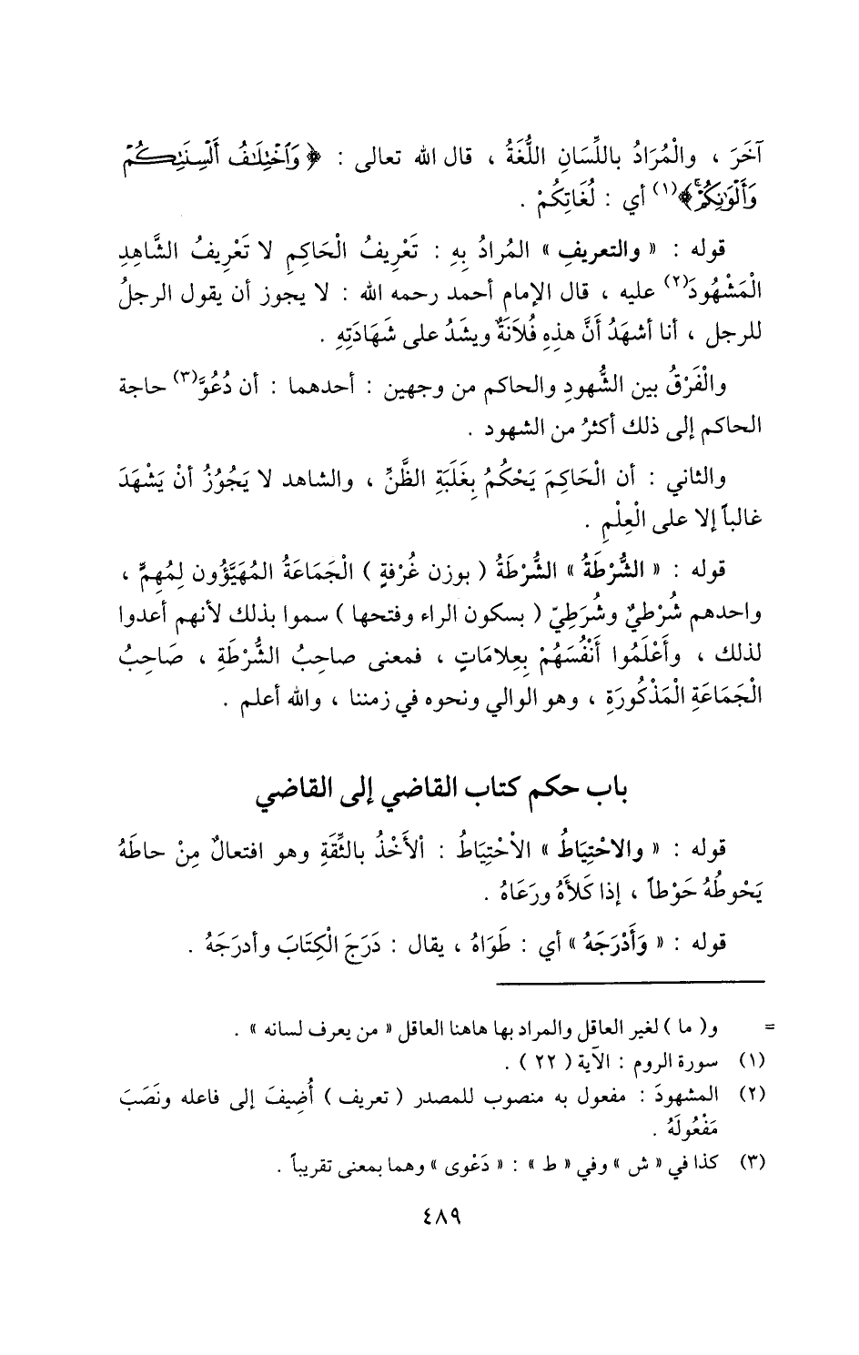 قوله: "والتعريفِ" المراد به: تعريف الحاكم لا تعريف الشاهد المشهود2 عليه، قال الإمام أحمد رحمه الله: لا يجوز أن يقول الرجل للرجل، أنا أشهد أن هذه فلانة ويشد على شهادته.