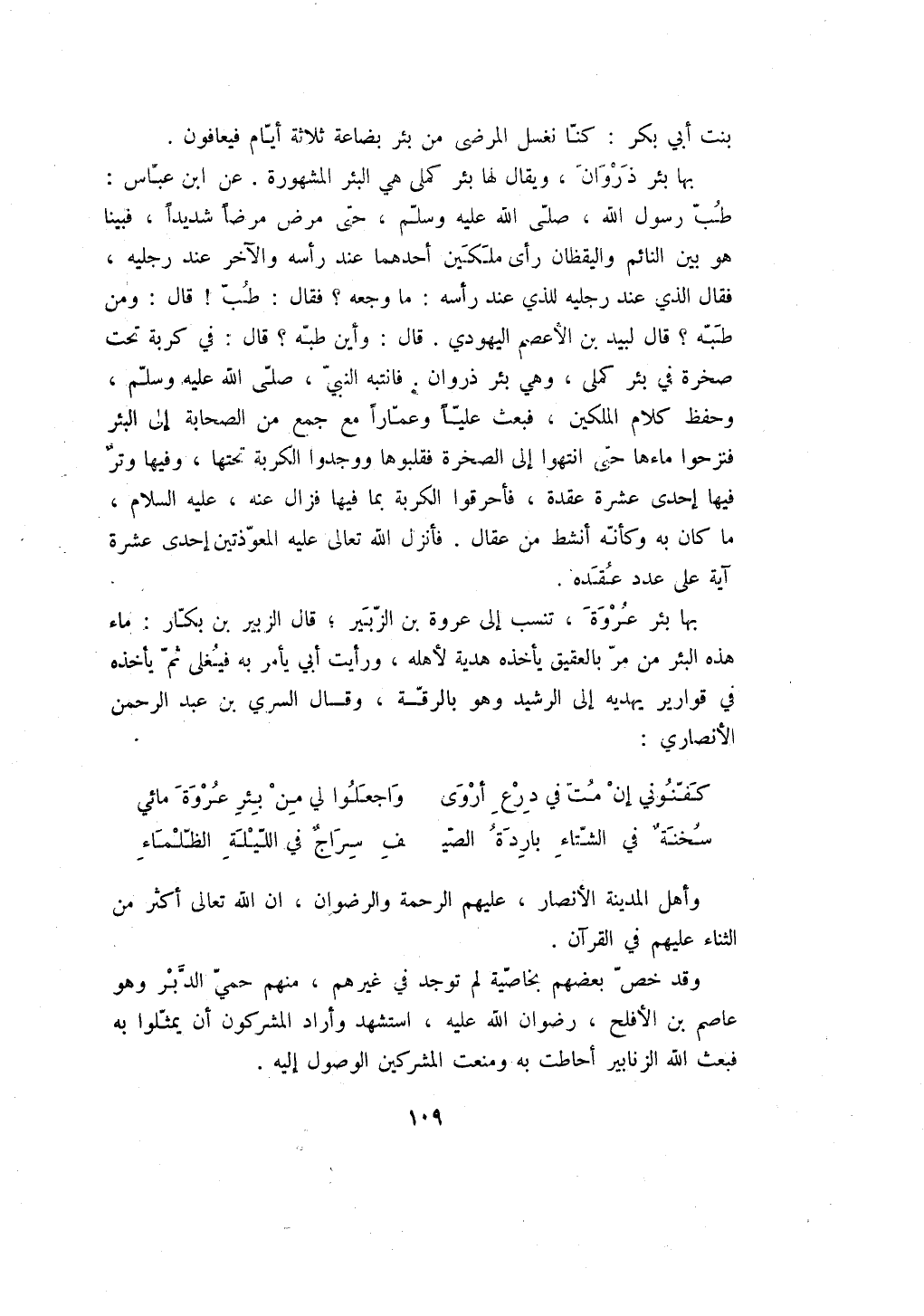 بنت أبي بكر: كنا نغسل المرضى من بئر بضاعة ثلاثة أيام فيعافون.