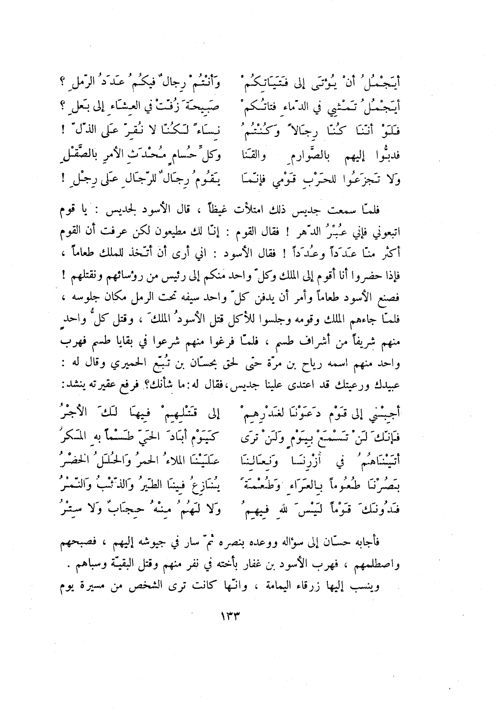 فأجابه حسان إلى سؤاله ووعده بنصره ثم سار في جيوشه إليهم، فصبحهم واصطلمهم، فهرب الأسود بن غفار بأخته في نفر منهم وقتل البقية وسباهم.