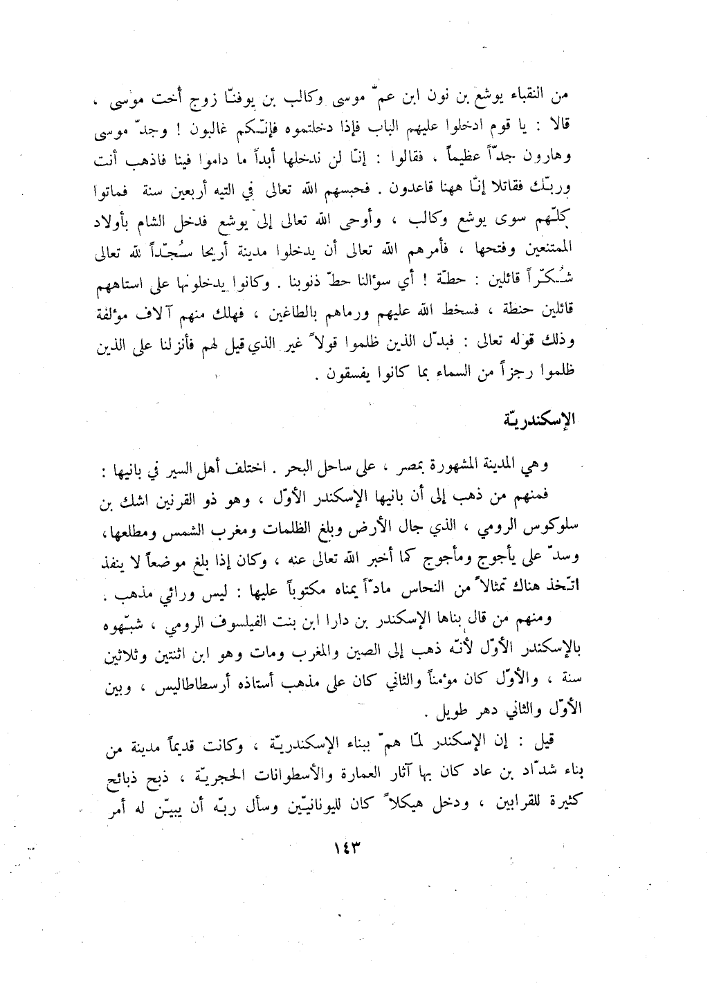 وهي المدينة المشهورة بمصر، على ساحل البحر. اختلف أهل السير في بانيها: فمنهم من ذهب إلى أن بانيها الإسكندر الأول، وهو ذو القرنين اشك بن سلوكوس الرومي، الذي جال الأرض وبلغ الظلمات ومغرب الشمس ومطلعها، وسد على يأجوج ومأجوج كما أخبر الله تعالى عنه، وكان إذا بلغ موضعاً لا ينفذ اتخذ هناك تمثالاً من النحاس ماداً يمناه مكتوباً عليها: ليس ورائي مذهب.