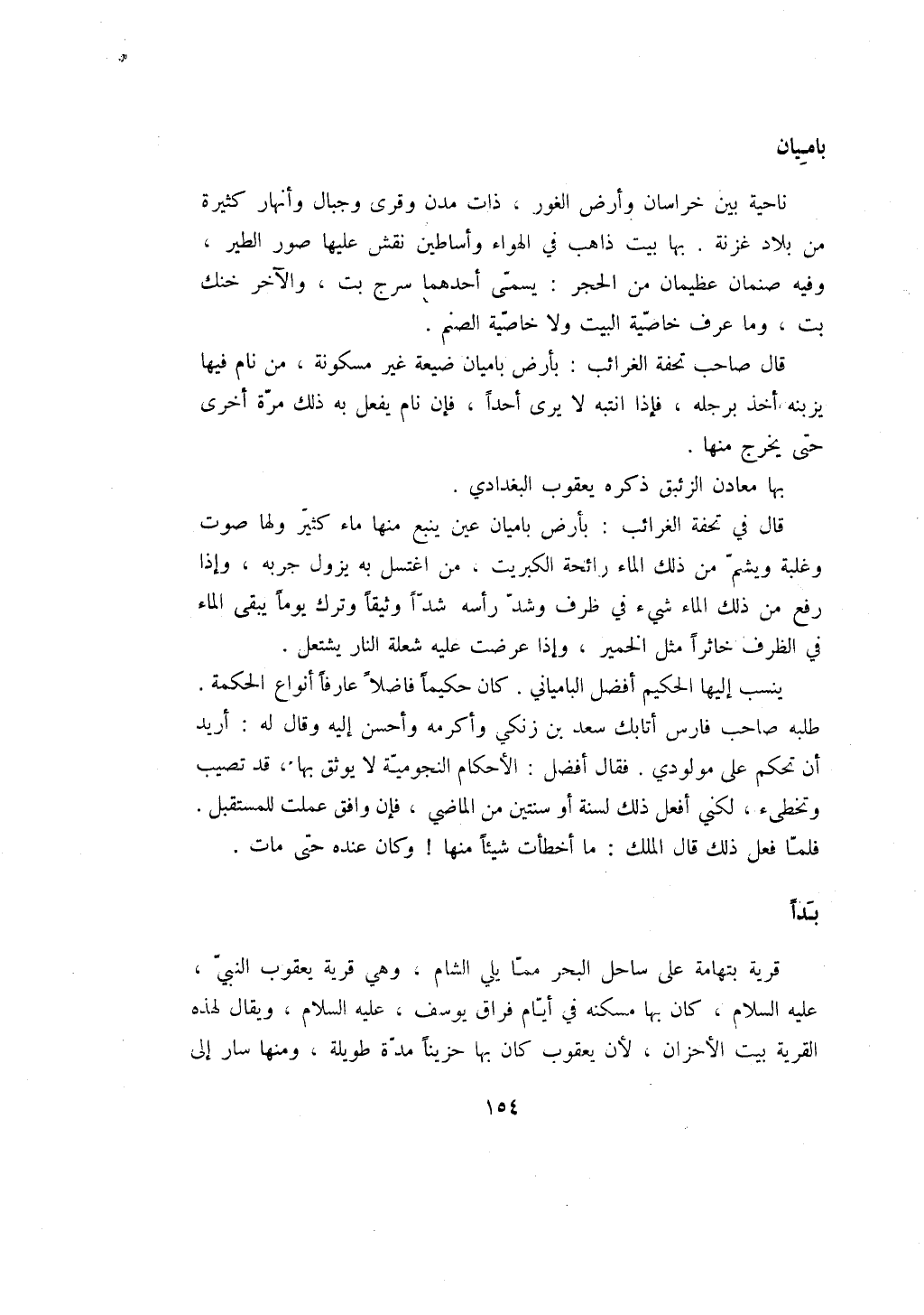 قال صاحب تحفة الغرائب: بأرض باميان ضيعة غير مسكونة، من نام فيها يزبنه أخذ برجله، فإذا انتبه لا يرى أحداً، فإن نام يفعل به ذلك مرة أخرى حتى يخرج منها.