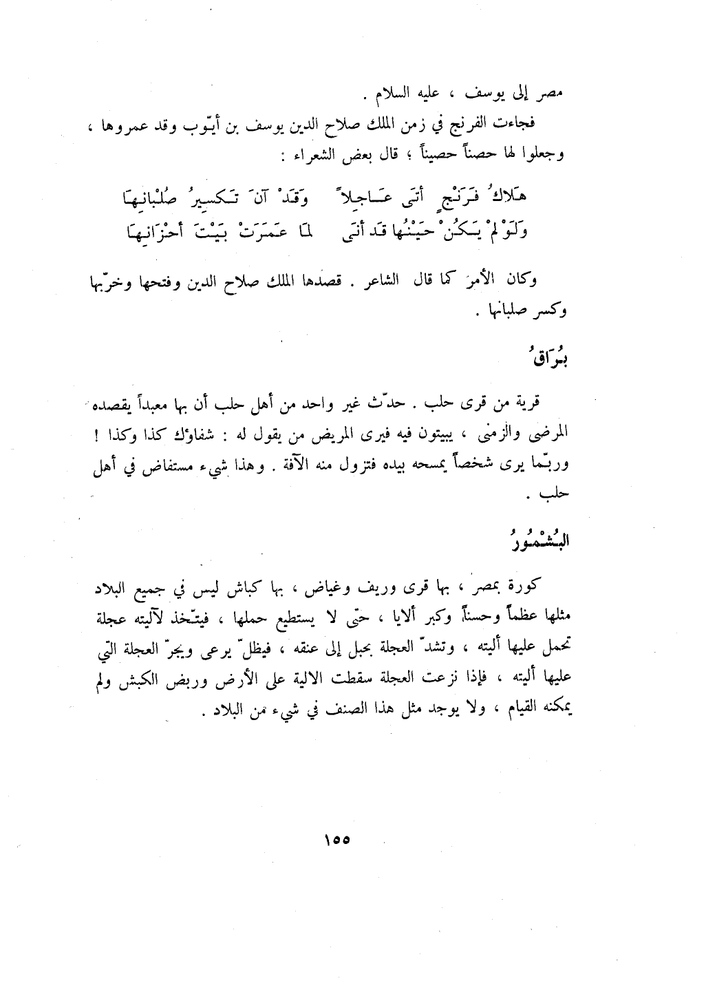 فجاءت الفرنج في زمن الملك صلاح الدين يوسف بن أيوب وقد عمروها، وجعلوا لها حصناً حصيناً؛ قال بعض الشعراء: