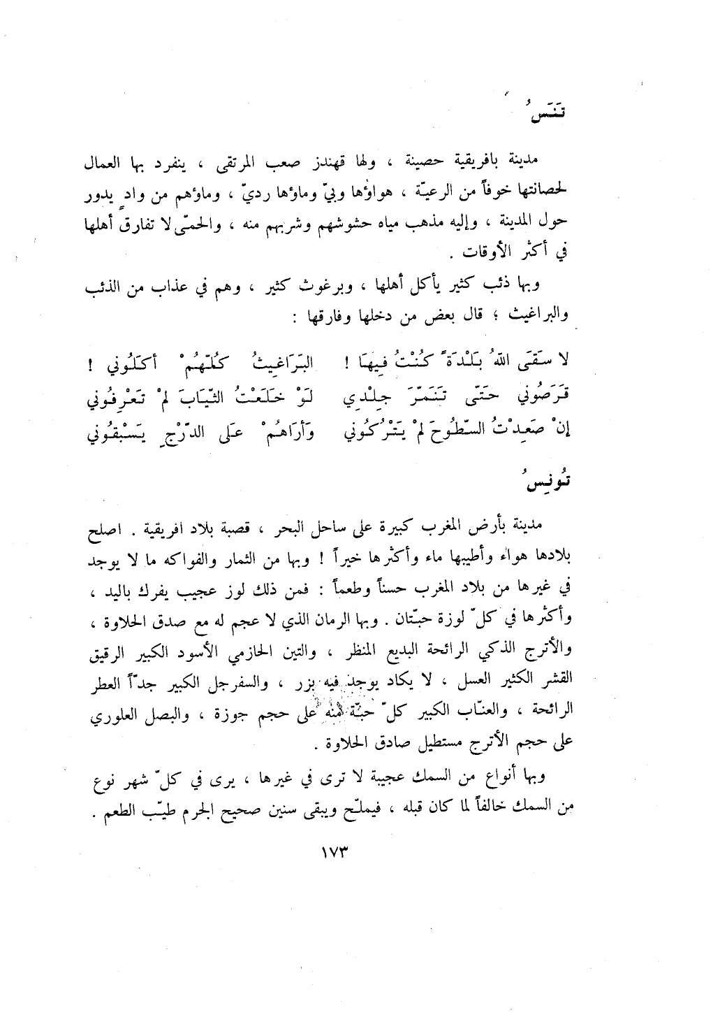 مدينة بأرض المغرب كبيرة على ساحل البحر، قصبة بلاد افريقية. اصلح بلادها هواء وأطيبها ماء وأكثرها خيراً! وبها من الثمار والفواكه ما لا يوجد في غيرها من بلاد المغرب حسناً وطعماً: فمن ذلك لوز عجيب يفرك باليد، وأكثرها في كل لوزة حبتان. وبها الرمان الذي لا عجم له مع صدق الحلاوة، والأترج الذكي الرائحة البديع المنظر، والتين الحازمي الأسود الكبير الرقيق القشر الكثير العسل، لا يكاد يوجد فيه بزر، والسفرجل الكبير جداً العطر الرائحة، والعناب الكبير كل حبة منه على حجم جوزة، والبصل العلوري على حجم الأترج مستطيل صادق الحلاوة.