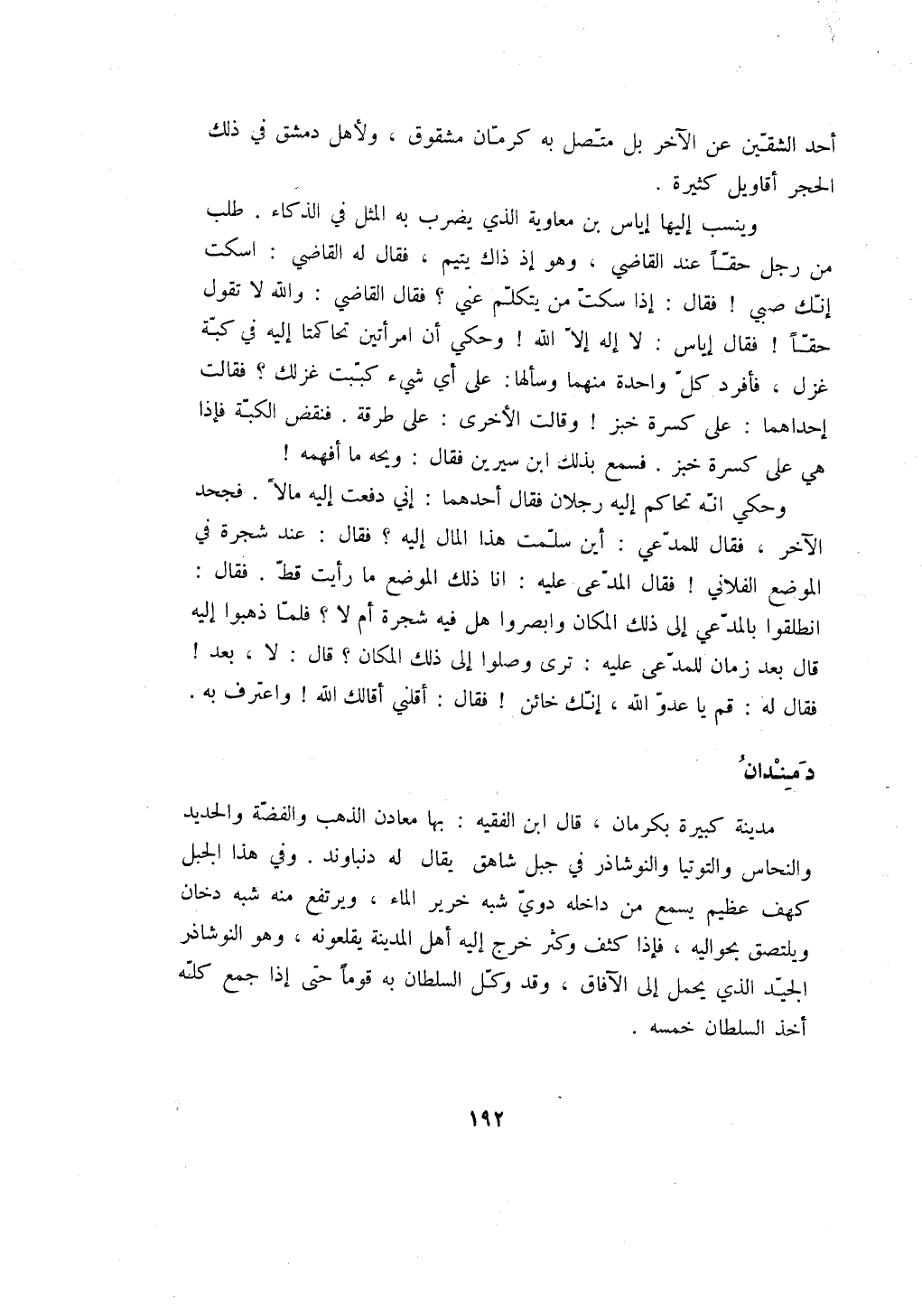 أحد الشقين عن الآخر بل متصل به كرمان مشقوق، ولأهل دمشق في ذلك الحجر أقاويل كثيرة.