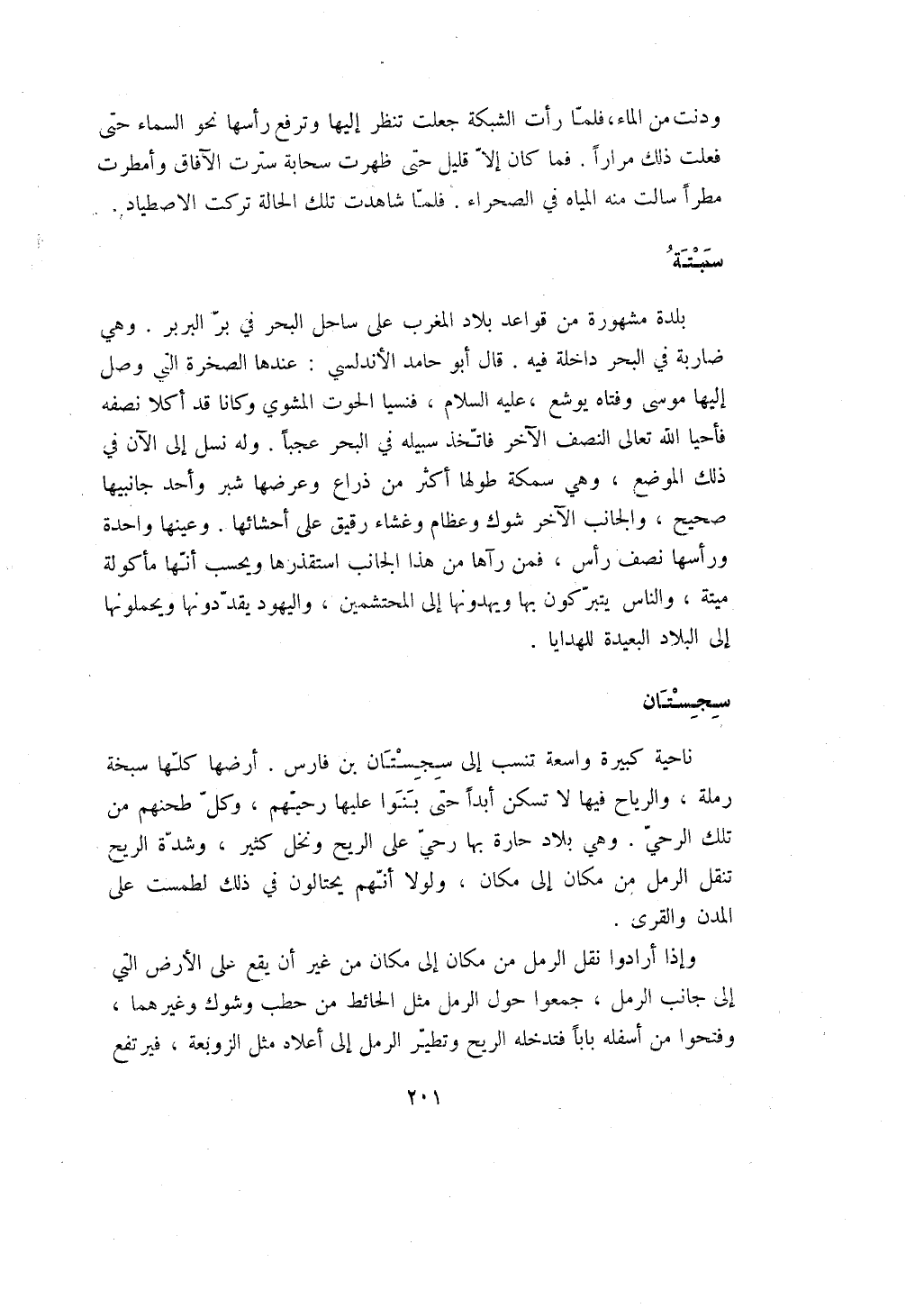 ناحية كبيرة واسعة تنسب إلى سجستان بن فارس. أرضها كلها سبخة رملة، والرياح فيها لا تسكن أبداً حتى بنوا عليها رحيهم، وكل طحنهم من تلك الرحي. وهي بلاد حارة بها رحي على الريح ونخل كثير، وشدة الريح تنقل الرمل من مكان إلى مكان، ولولا أنهم يحتالون في ذلك لطمست على المدن والقرى.