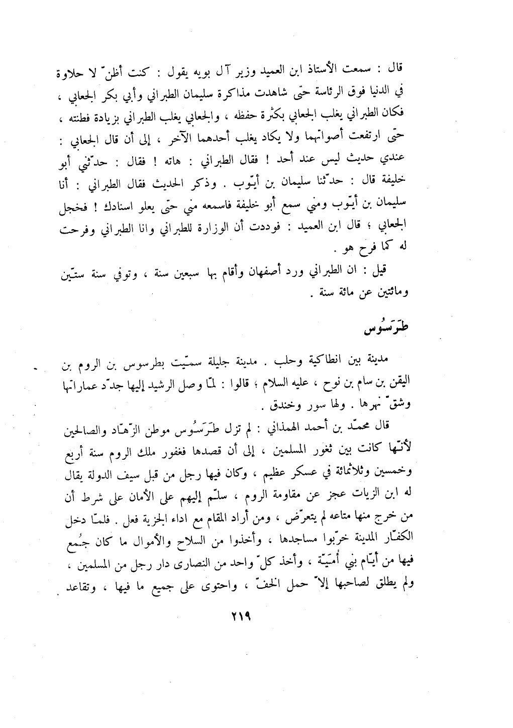 قال محمد بن أحمد الهمذاني: لم تزل طرسوس موطن الزهاد والصالحين لأنها كانت بين ثغور المسلمين، إلى أن قصدها فغفور ملك الروم سنة أربع وخمسين وثلاثمائة في عسكر عظيم، وكان فيها رجل من قبل سيف الدولة يقال له ابن الزيات عجز عن مقاومة الروم، سلم إليهم على الأمان على شرط أن من خرج منها متاعه لم يتعرض، ومن أراد المقام مع اداء الجزية فعل. فلما دخل الكفار المدينة خربوا مساجدها، وأخذوا من السلاح والأموال ما كان جمع فيها من أيام بني أمية، وأخذ كل واحد من النصارى دار رجل من المسلمين، ولم يطلق لصاحبها إلا حمل الخف، واحتوى على جميع ما فيها، وتقاعد