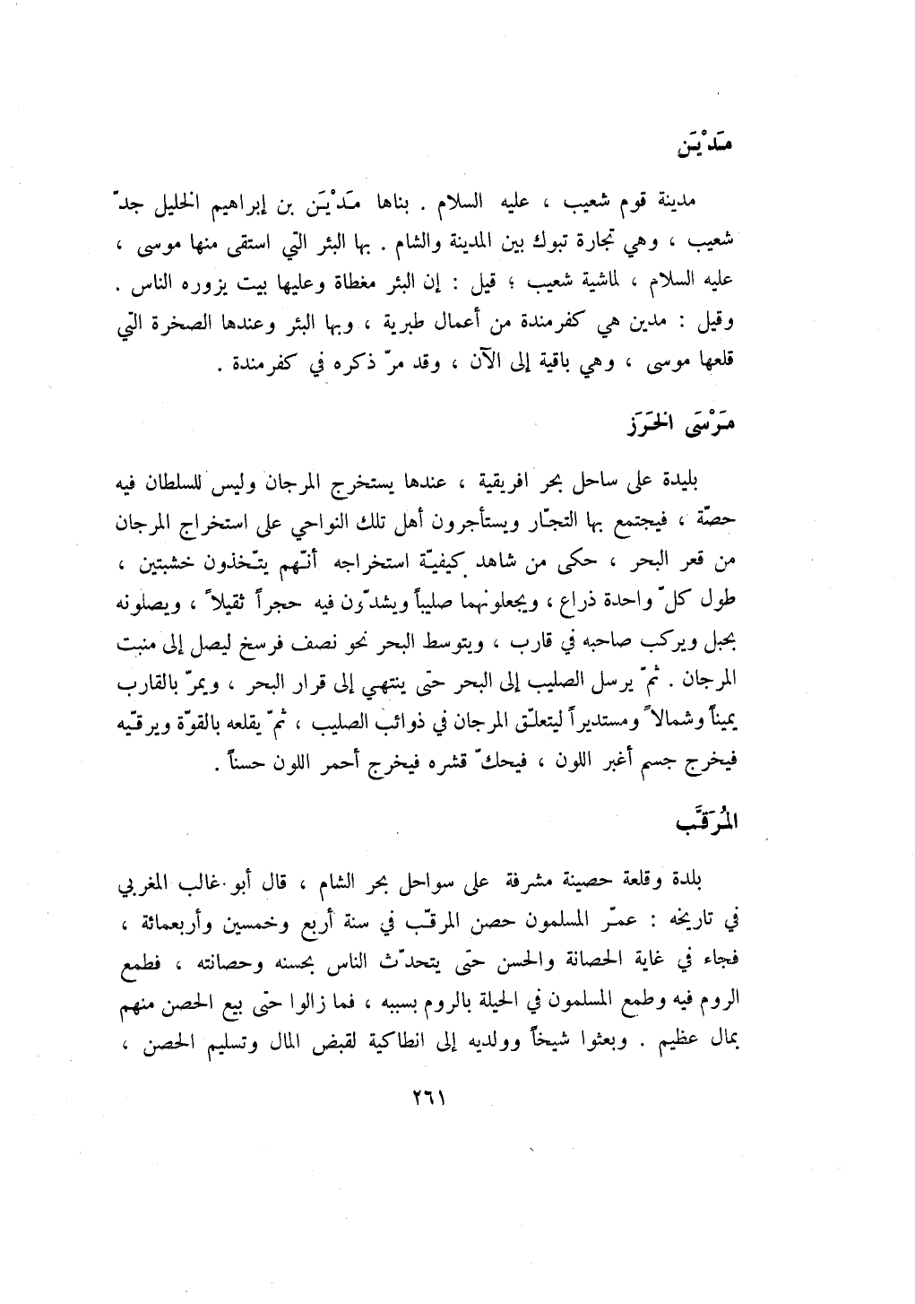 مدينة قوم شعيب، عليه السلام. بناها مدين بن إبراهيم الخليل جد شعيب، وهي تجارة تبوك بين المدينة والشام. بها البئر التي استقى منها موسى، عليه السلام، لماشية شعيب؛ قيل: إن البئر مغطاة وعليها بيت يزوره الناس. وقيل: مدين هي كفرمندة من أعمال طبرية، وبها البئر وعندها الصخرة التي قلعها موسى، وهي باقية إلى الآن، وقد مر ذكره في كفرمندة.