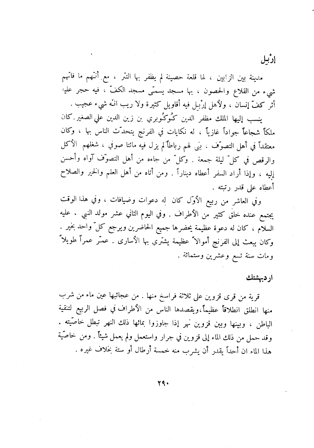 قرية من قرى قزوين على ثلاثة فراسخ منها. من عجائبها عين ماء من شرب منها انطلق انطلاقاً عظيماً، ويقصدها الناس من الأطراف في فصل الربيع لتنقية الباطن، وبينها وبين قزوين نهر إذا جاوزوا بمائها ذلك النهر تبطل خاصيته، وقد حمل من ذلك الماء إلى قزوين في جرار واستعمل ولم يعمل شيئاً. ومن خاصية هذا الماء ان أحداً يقدر أن يشرب منه خمسة أرطال أو ستة بخلاف غيره.