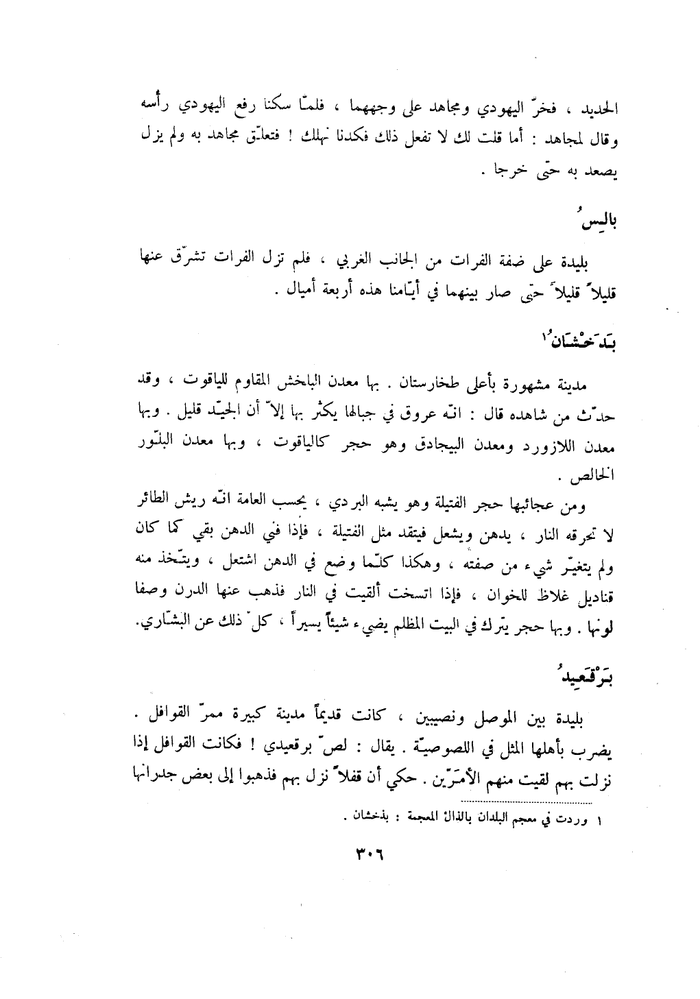 مدينة مشهورة بأعلى طخارستان. بها معدن البلخش المقاوم للياقوت، وقد حدث من شاهده قال: انه عروق في جبالها يكثر بها إلا أن الجيد قليل. وبها معدن اللازورد ومعدن البيجادق وهو حجر كالياقوت، وبها معدن البلور الخالص.