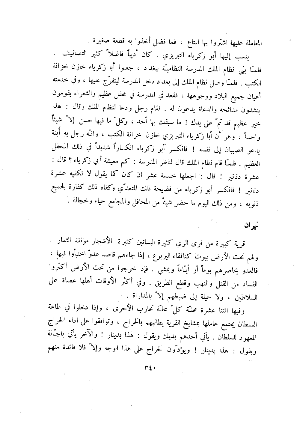 ينسب إليها أبو زكرياء التبريزي. كان أديباً فاضلاً كثير التصانيف. فلما بنى نظام الملك المدرسة النظامية ببغداد، جعلوا أبا زكرياء خازن خزانة الكتب. فلما وصل نظام الملك إلى بغداد دخل المدرسة ليتفرج عليها، وفي خدمته أعيان جميع البلاد ووجوهها، فقعد في المدرسة في محفل عظيم والشعراء يقومون ينشدون مدائحه والدعاة يدعون له. فقام رجل ودعا لنظام الملك وقال: هذا خير عظيم قد تم على يدك! ما سبقك بها أحد، وكل ما فيها حسن إلا شيئاً واحداً، وهو أن أبا زكرياء التبريزي خازن خزانة الكتب، وانه رجل به أبنة يدعو الصبيان إلى نفسه! فانكسر أبو زكرياء انكساراً شديداً في ذلك المحفل العظيم. فلما قام نظام الملك قال لناظر المدرسة: كم معيشة أبي زكرياء؟ قال: عشرة دنانير! قال: اجعلها خمسة عشر ان كان كما يقول لا تكفيه عشرة دنانير! فانكسر أبو زكرياء من فضيحة ذلك المتعدي وكفاه ذلك كفارة لجميع ذنوبه، ومن ذلك اليوم ما حضر شيئاً من المحافل والمجامع حياء وخجالة.