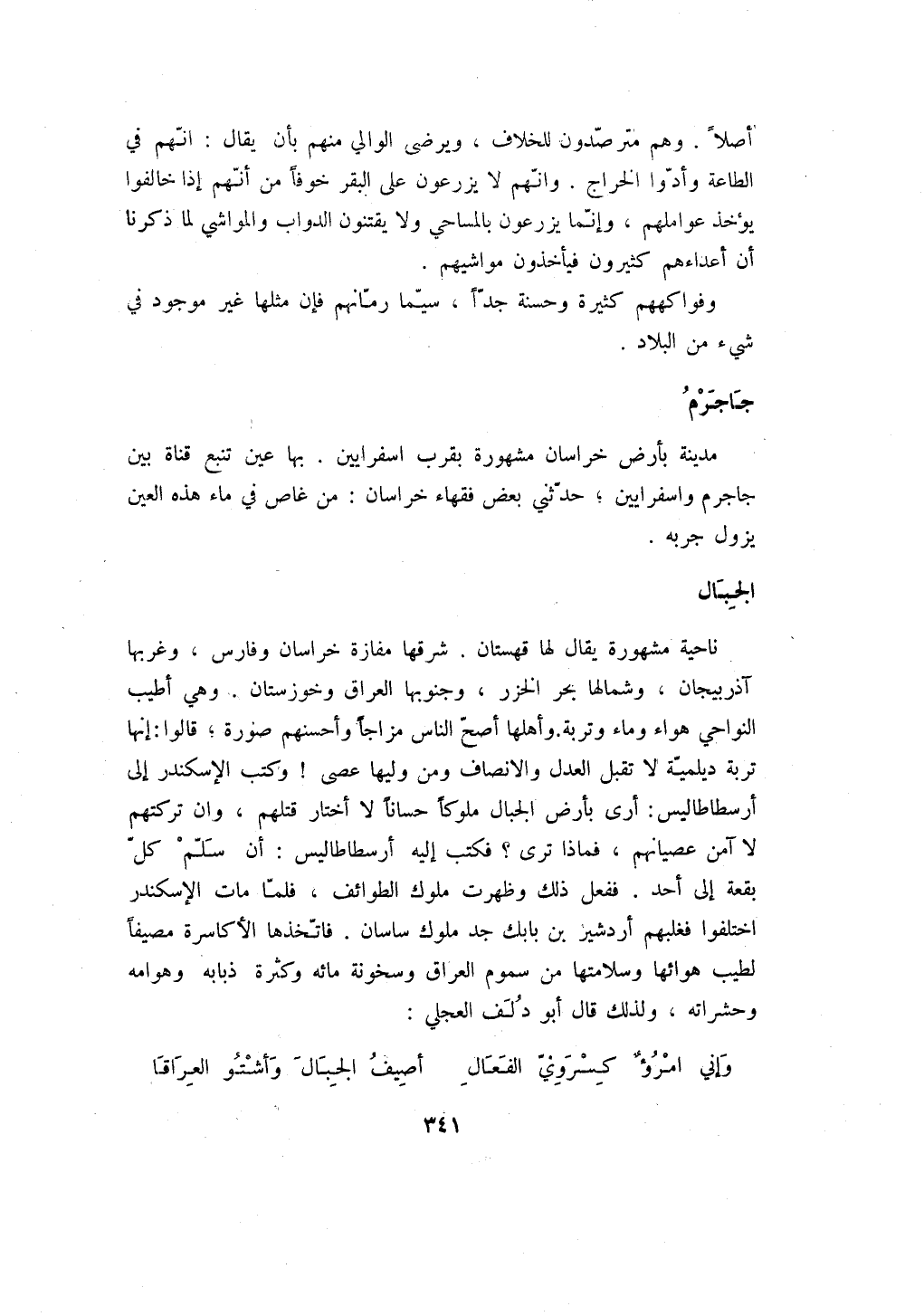 ناحية مشهورة يقال لها قهستان. شرقها مفازة خراسان وفارس، وغربها آذربيجان، وشمالها بحر الخزر، وجنوبها العراق وخوزستان. وهي أطيب النواحي هواء وماء وتربة. وأهلها أصح الناس مزاجاً وأحسنهم صورة؛ قالوا: إنها تربة ديلمية لا تقبل العدل والانصاف ومن وليها عصى! وكتب الإسكندر إلى أرسطاطاليس: أرى بأرض الجبال ملوكاً حساناً لا أختار قتلهم، وان تركتهم لا آمن عصيانهم، فماذا ترى؟ فكتب إليه أرسطاطاليس: أن سلم كل بقعة إلى أحد. ففعل ذلك وظهرت ملوك الطوائف، فلما مات الإسكندر اختلفوا فغلبهم أردشير بن بابك جد ملوك ساسان. فاتخذها الأكاسرة مصيفاً لطيب هوائها وسلامتها من سموم العراق وسخونة مائه وكثرة ذبابه وهوامه وحشراته، ولذلك قال أبو دلف العجلي: