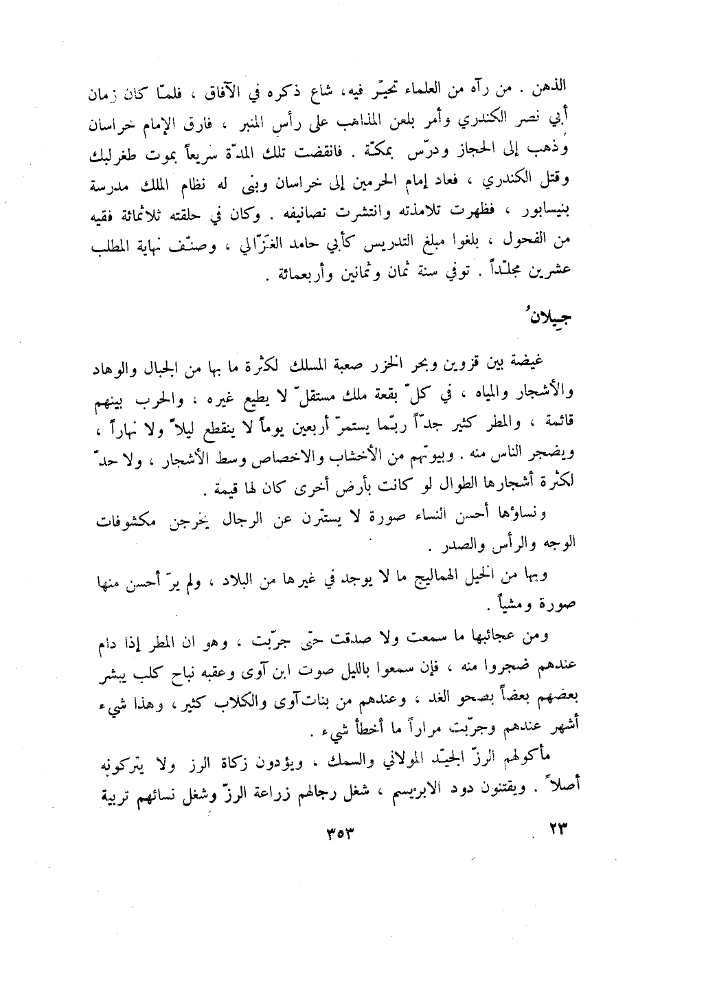 غيضة بين قزوين وبحر الخزر صعبة المسلك لكثرة ما بها من الجبال والوهاد والأشجار والمياه، في كل بقعة ملك مستقل لا يطيع غيره، والحرب بينهم قائمة، والمطر كثير جداً ربما يستمر أربعين يوماً لا ينقطع ليلا ولا نهاراً، ويضجر الناس منه. وبيوتهم من الأخشاب والاخصاص وسط الأشجار، ولا حد لكثرة أشجارها الطوال لو كانت بأرض أخرى كان لها قيمة.
