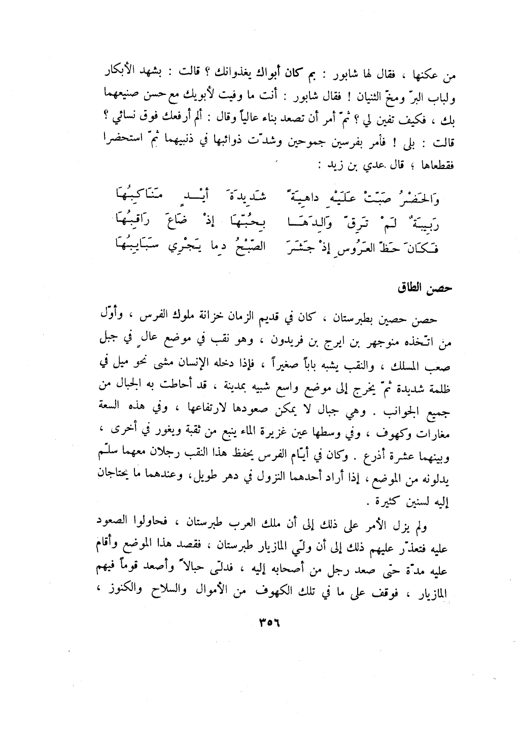 ولم يزل الأمر على ذلك إلى أن ملك العرب طبرستان، فحاولوا الصعود عليه فتعذر عليهم ذلك إلى أن ولي المازيار طبرستان، فقصد هذا الموضع وأقام عليه مدة حتى صعد رجل من أصحابه إليه، فدلى حبالاً وأصعد قوماً فيهم المازيار، فوقف على ما في تلك الكهوف من الأموال والسلاح والكنوز،