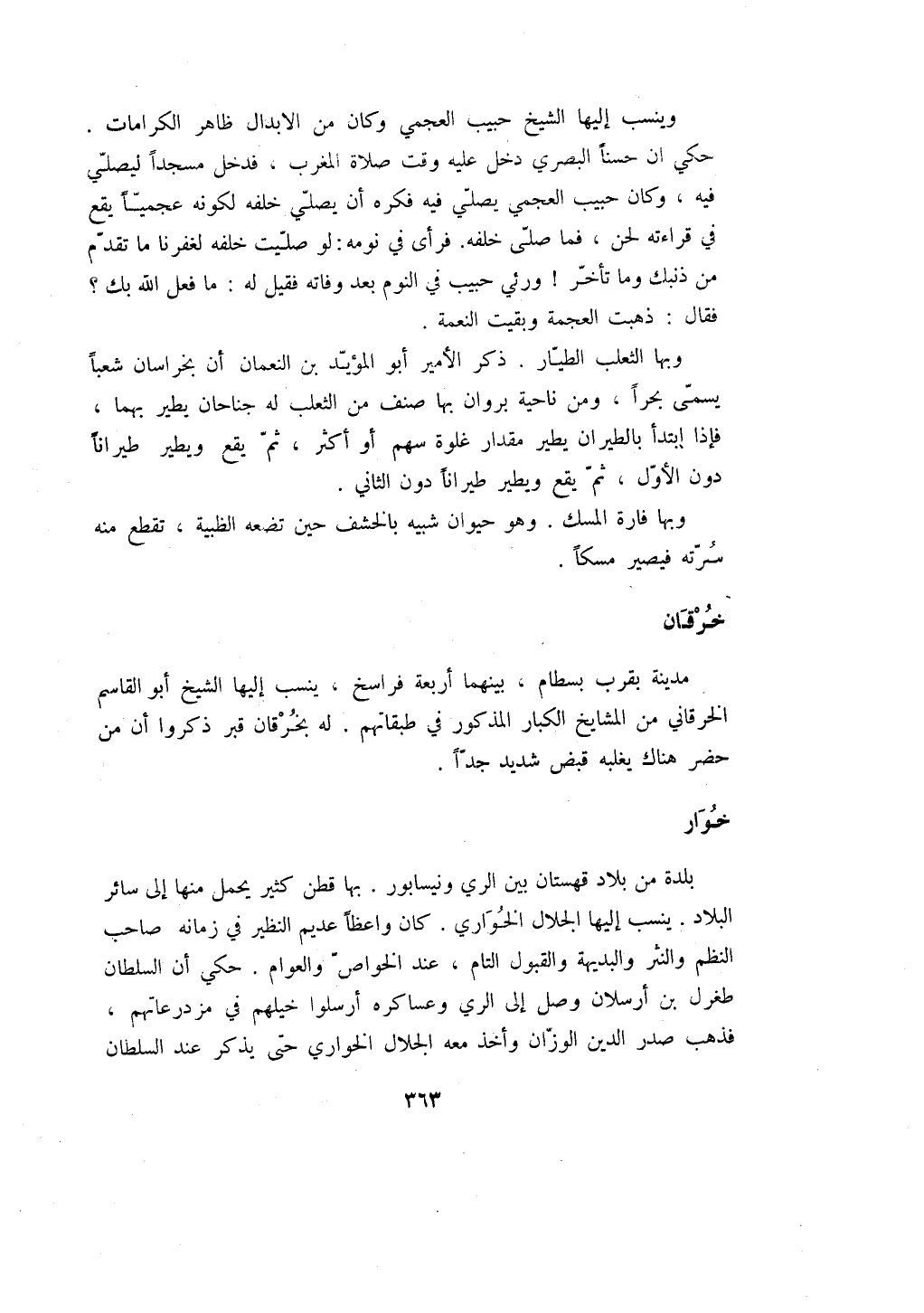 بلدة من بلاد قهستان بين الري ونيسابور. بها قطن كثير يحمل منها إلى سائر البلاد. ينسب إليها الجلال الخواري. كان واعظاً عديم النظير في زمانه صاحب النظم والنثر والبديهة والقبول التام، عند الخواص والعوام. حكي أن السلطان طغرل بن أرسلان وصل إلى الري وعساكره أرسلوا خيلهم في مزدرعاتهم، فذهب صدر الدين الوزان وأخذ معه الجلال الخواري حتى يذكر عند السلطان
