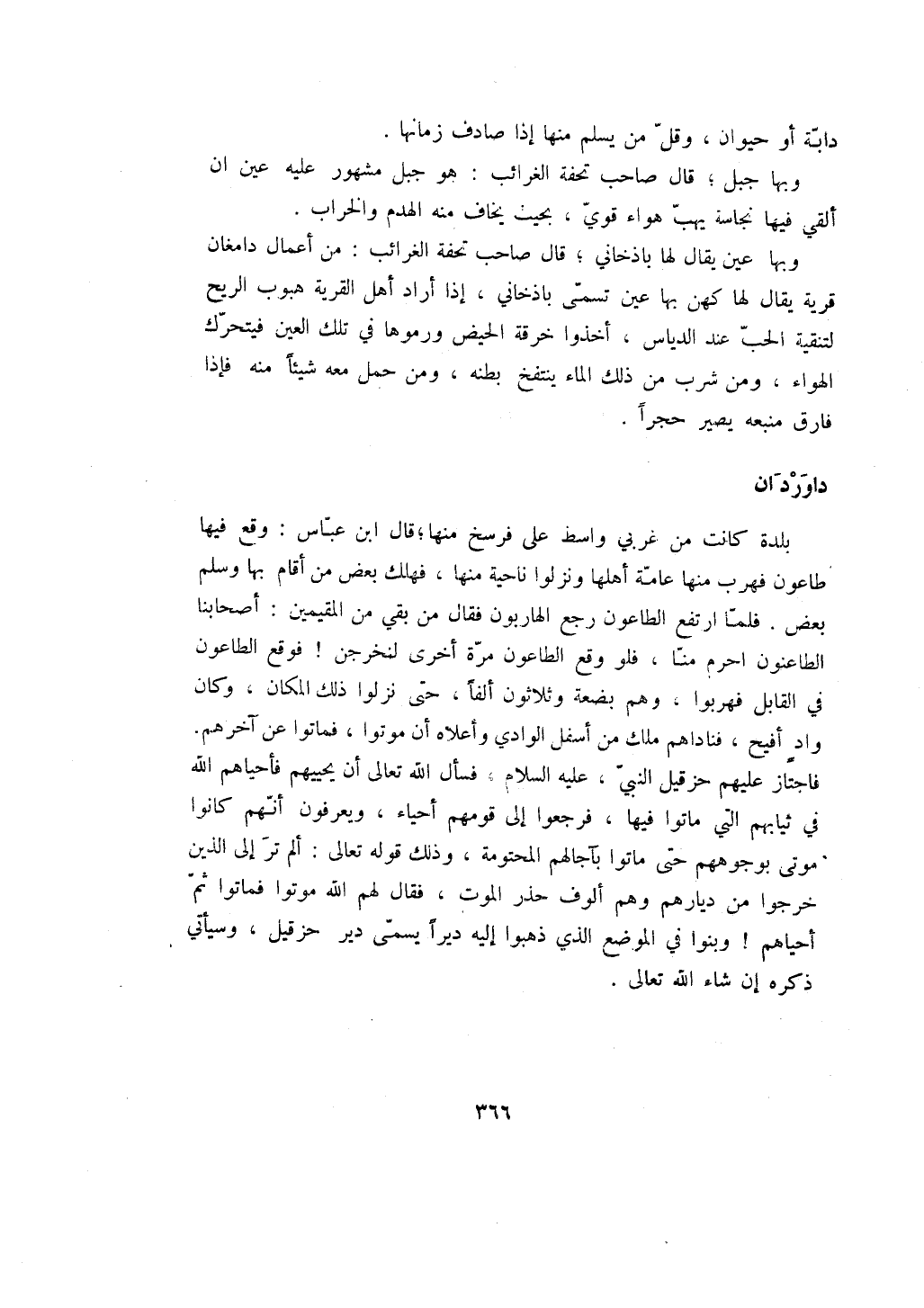 بلدة كانت من غربي واسط على فرسخ منها؛ قال ابن عباس: وقع فيها طاعون فهرب منها عامة أهلها ونزلوا ناحية منها، فهلك بعض من أقام بها وسلم بعض. فلما ارتفع الطاعون رجع الهاربون فقال من بقي من المقيمين: أصحابنا الطاعنون احرم منا، فلو وقع الطاعون مرة أخرى لنخرجن! فوقع الطاعون في القابل فهربوا، وهم بضعة وثلاثون ألفاً، حتى نزلوا ذلك المكان، وكان واد أفيح، فناداهم ملك من أسفل الوادي وأعلاه أن موتوا، فماتوا عن آخرهم. فاجتاز عليهم حزقيل النبي، عليه السلام، فسأل الله تعالى أن يحييهم فأحياهم الله في ثيابم التي ماتوا فيها، فرجعوا إلى قومهم أحياء، ويعرفون أنهم كانوا موتى بوجوههم حتى حتى ماتوا بآجالهم المحتومة، وذلك قوله تعالى: ألم تر إلى الذين خرجوا من ديارهم وهم ألوف حذر الموت، فقال لهم الله موتوا فماتوا ثم أحياهم! وبنوا في الموضع الذي ذهبوا إليه ديراً يسمى دير حزقيل، وسيأتي ذكره إن شاء الله تعالى.