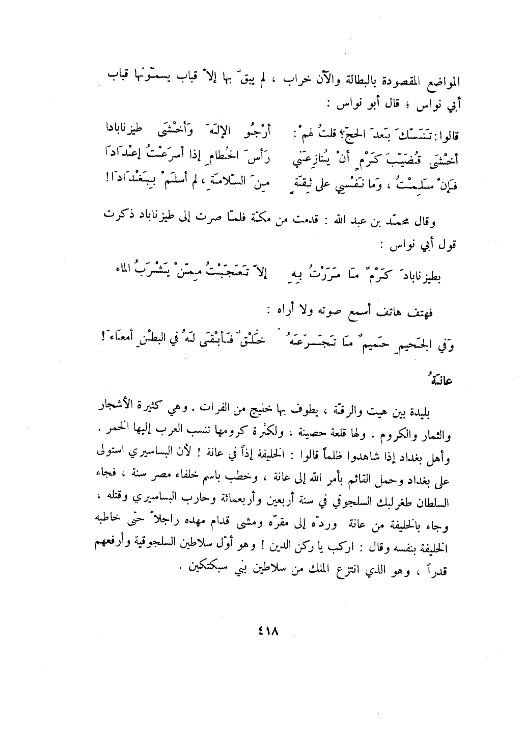 وقال محمد بن عبد الله: قدمت من مكة فلما صرت إلى طيزناباد ذكرت قول أبي نواس: