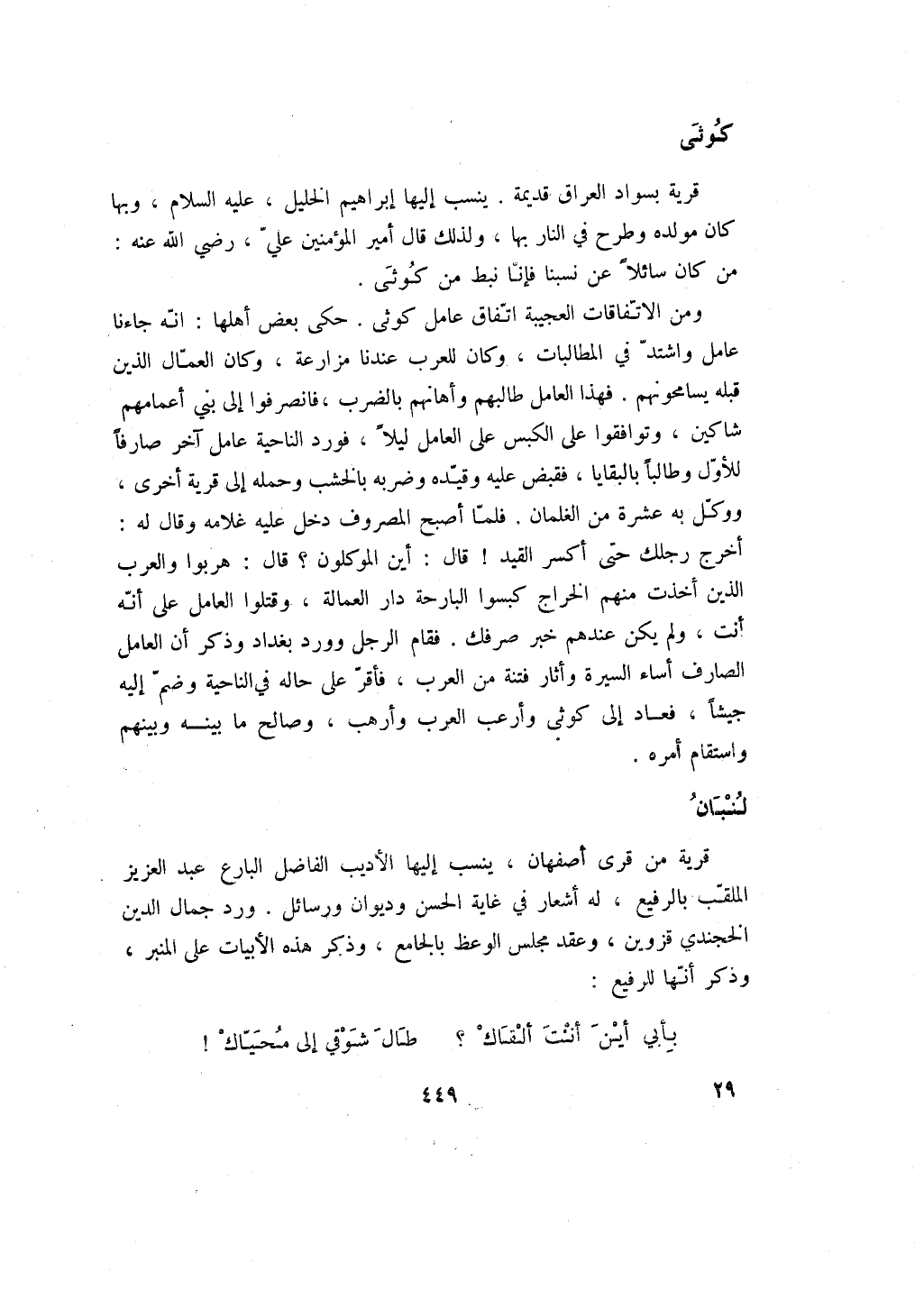 قرية من قرى أصفهان، ينسب إليها الأديب الفاضل البارع عبد العزيز الملقب بالرفيع، له أشعار في غاية الحسن وديوان ورسائل. ورد جمال الدين الخجندي قزوين، وعقد مجلس الوعظ بالجامع، وذكر هذه الأبيات على المنبر، وذكر أنها للرفيع: