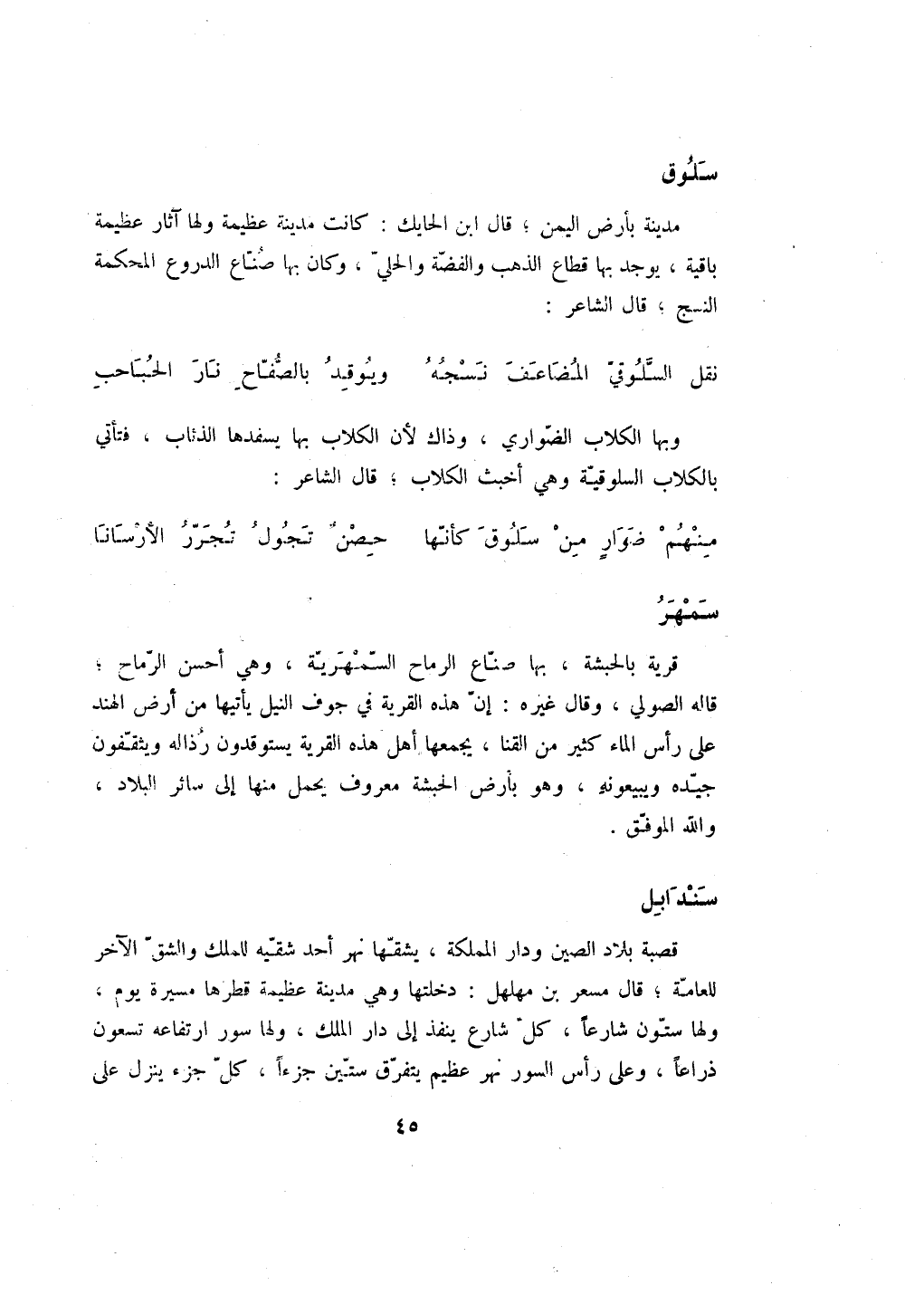 قصبة بلاد الصين ودار المملكة، يشقها نهر أحد شقيه للملك والشق الآخر للعامة؛ قال مسعر بن مهلهل: دخلتها وهي مدينة عظيمة قطرها مسيرة يوم، ولها ستون شارعاً، كل شارع ينفذ إلى دار الملك، ولها سور ارتفاعه تسعون ذراعاً، وعلى رأس السور نهر عظيم يتفرق ستين جزءاً، كل جزء ينزل على