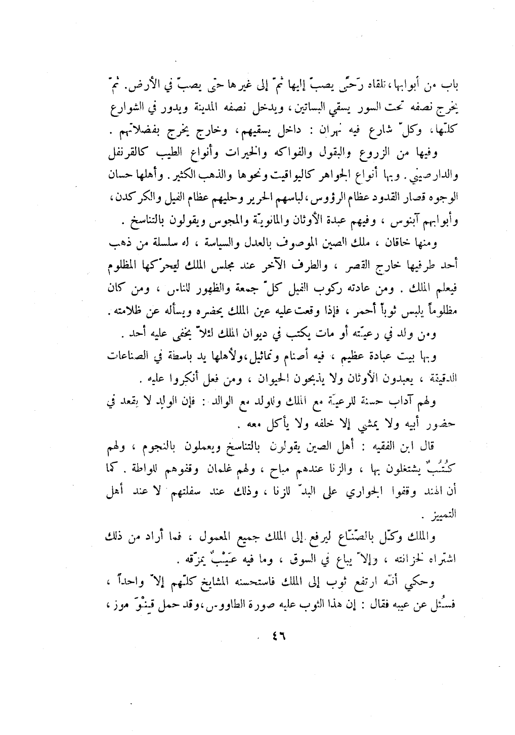 قال ابن الفقيه: أهل الصين يقولون بالتناسخ ويعملون بالنجوم، ولهم كتب يشتغلون بها، والزنا عندهم مباح، ولهم غلمان وقفوهم للواطة، كما أن الهند وقفوا الجواري على البد للزنا، وذلك عند سفلتهم لا عند أهل التمييز.